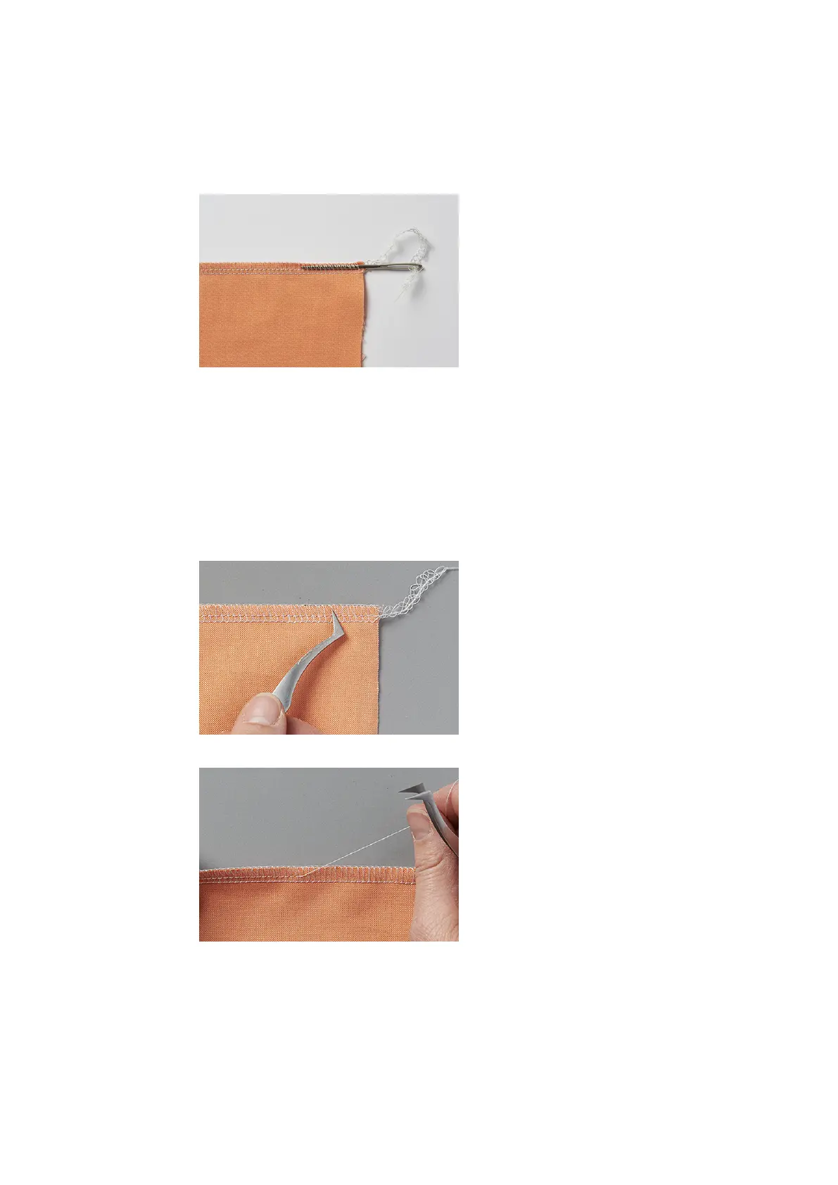 > Sew a thread chain of about 10 cm beyond the end of the seam.