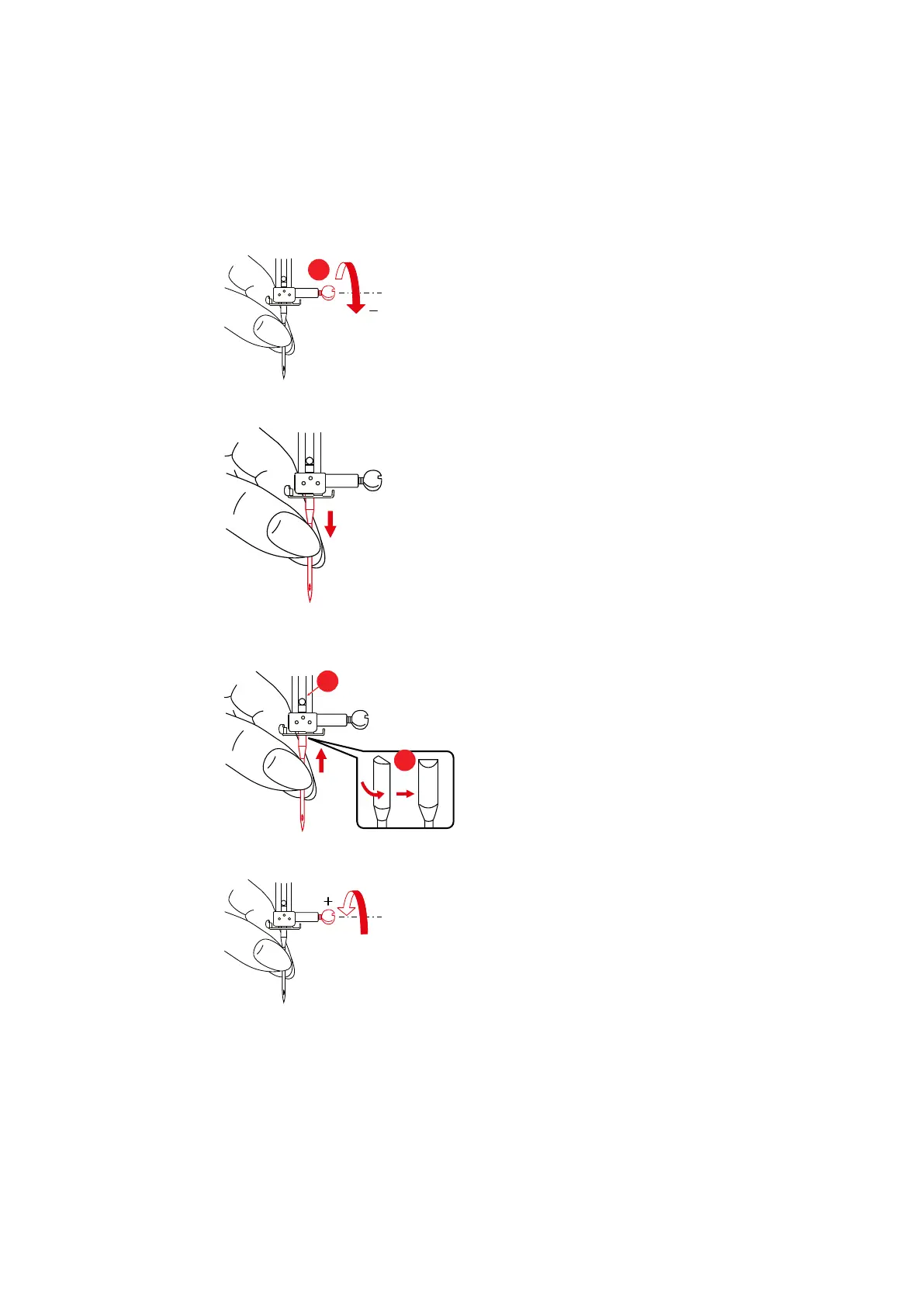 > Hold the new needle (2) with the flat side to the rear. Push the needle upwards into the needle holder as