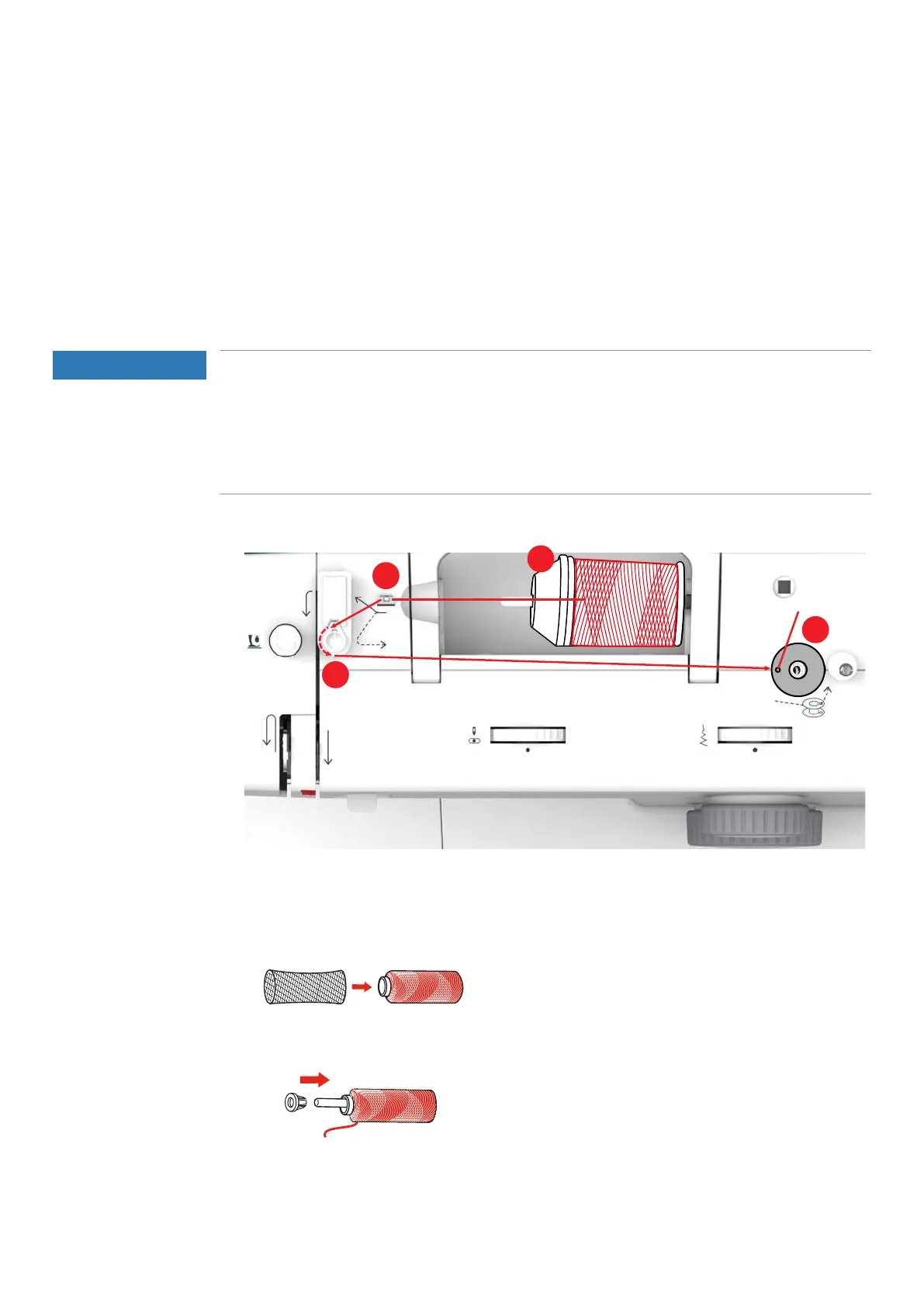 2 Thread guide 4 Spool pin