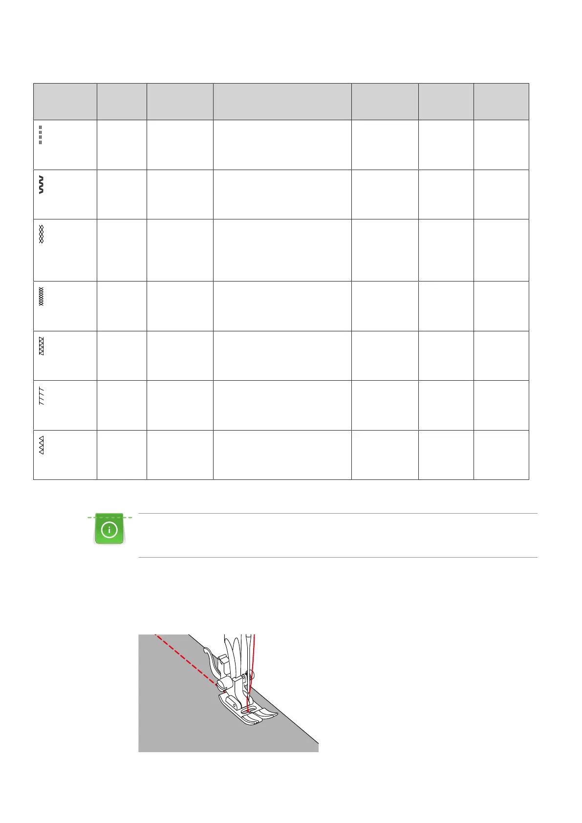 stitch for delicate fabric (approx. 2–2.5mm). Adjust the stitch length depending on the thread thickness,