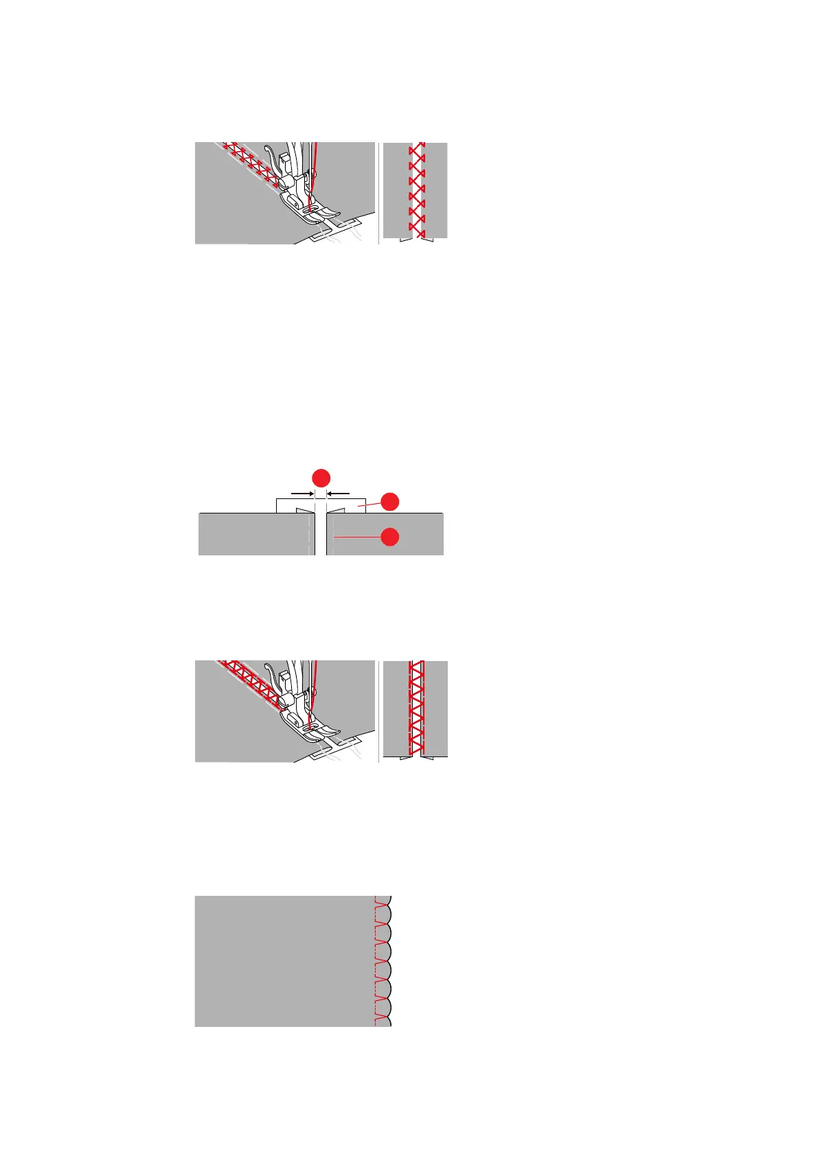 The Vari-overlock stitch can be used to create a shell edging effect on soft jerseys and fine fabric.