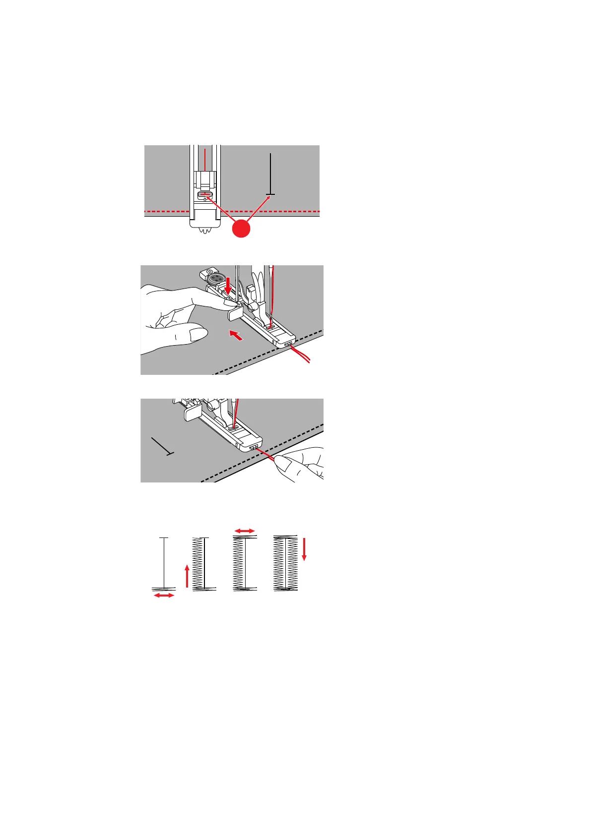 > Position the fabric under the presser foot so that the marking for the center line is aligned with the