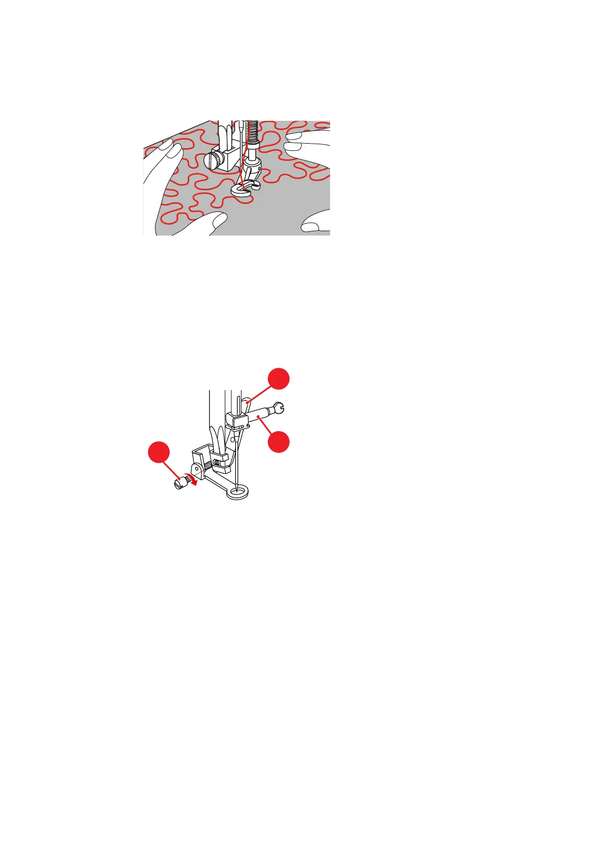 > Remove the presser foot holder and fit the freehand embroidery foot or darning/embroidery foot on the