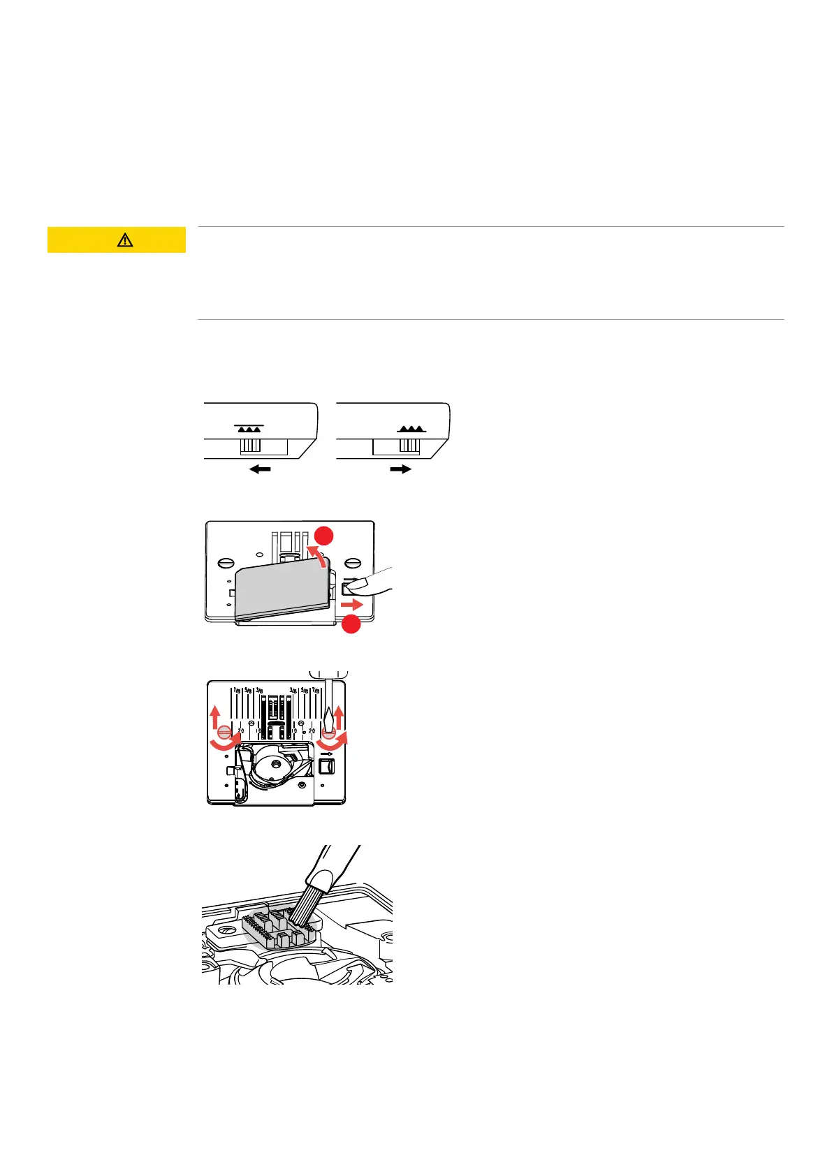 > Loosen both screws and remove the stitch plate.