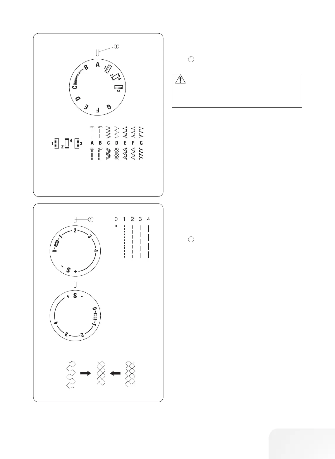 • Turn the knob to "S" to sew with stretch stitch pat-