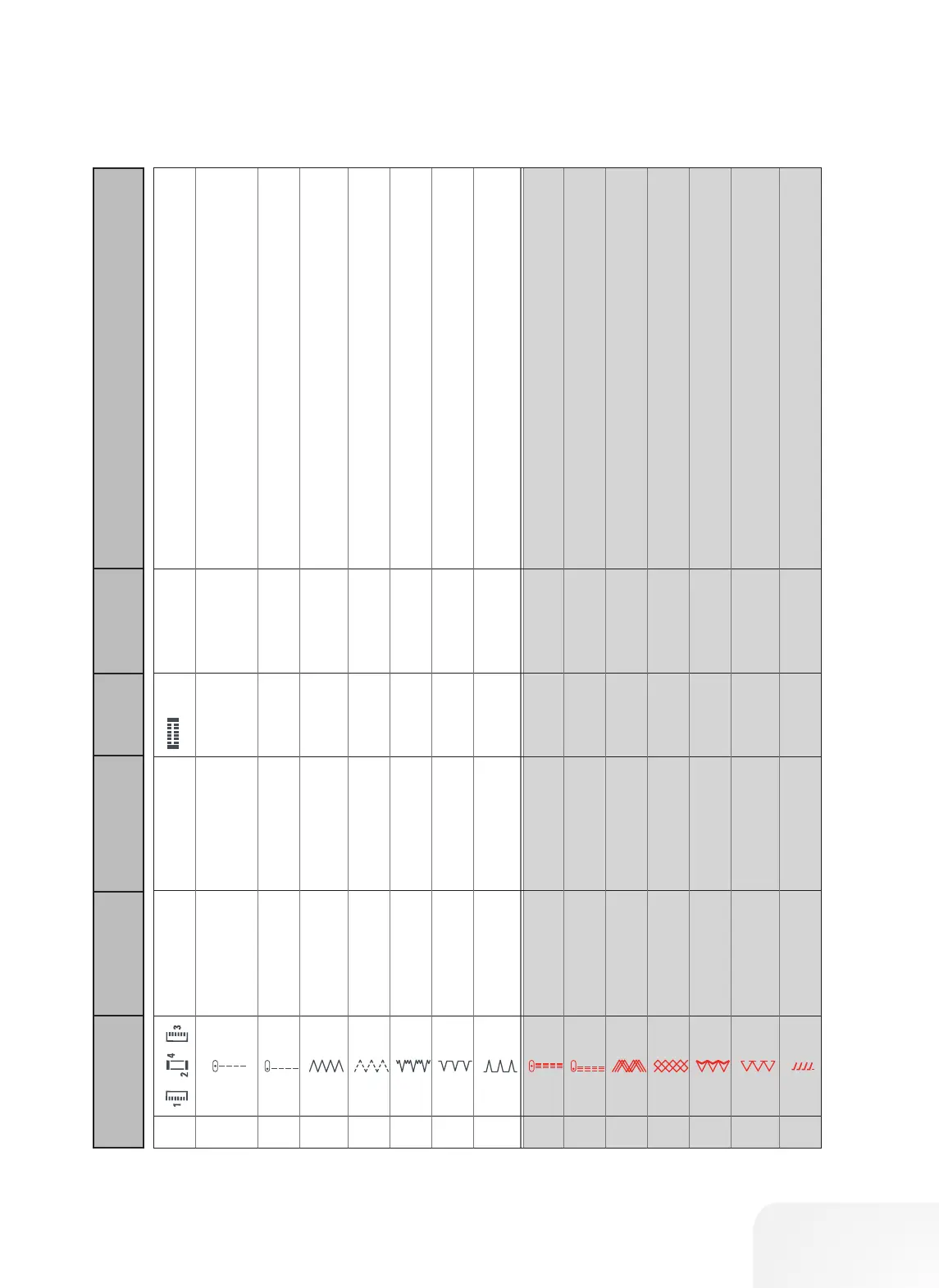 C Triple zigzag Zigzag foot S 2-6 Elastic stitch for decorative hem ends and quilting seams.
