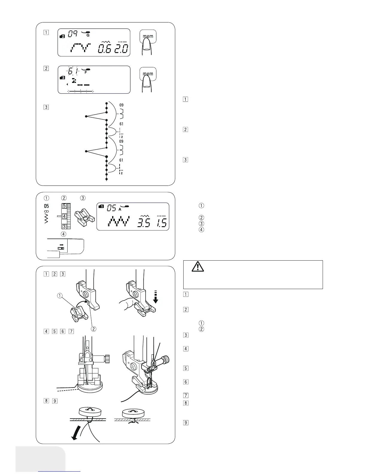 Pattern 61 (2 counts of straight stitch) is memorized.
