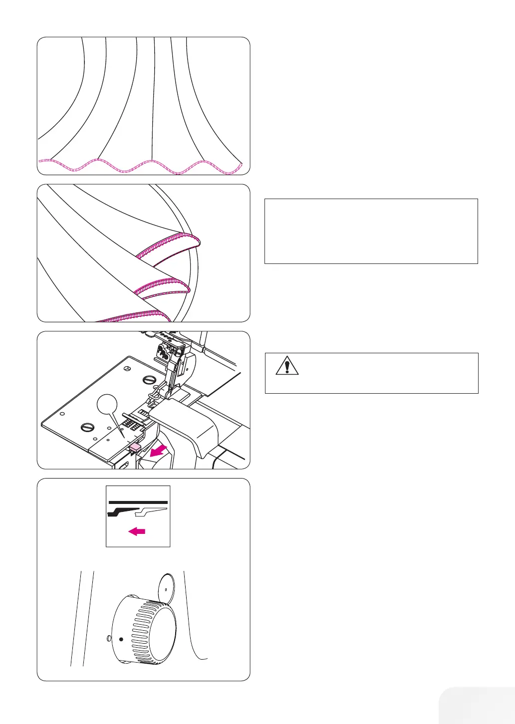 – Set stitch length dial to 1–2 and a fine seam will