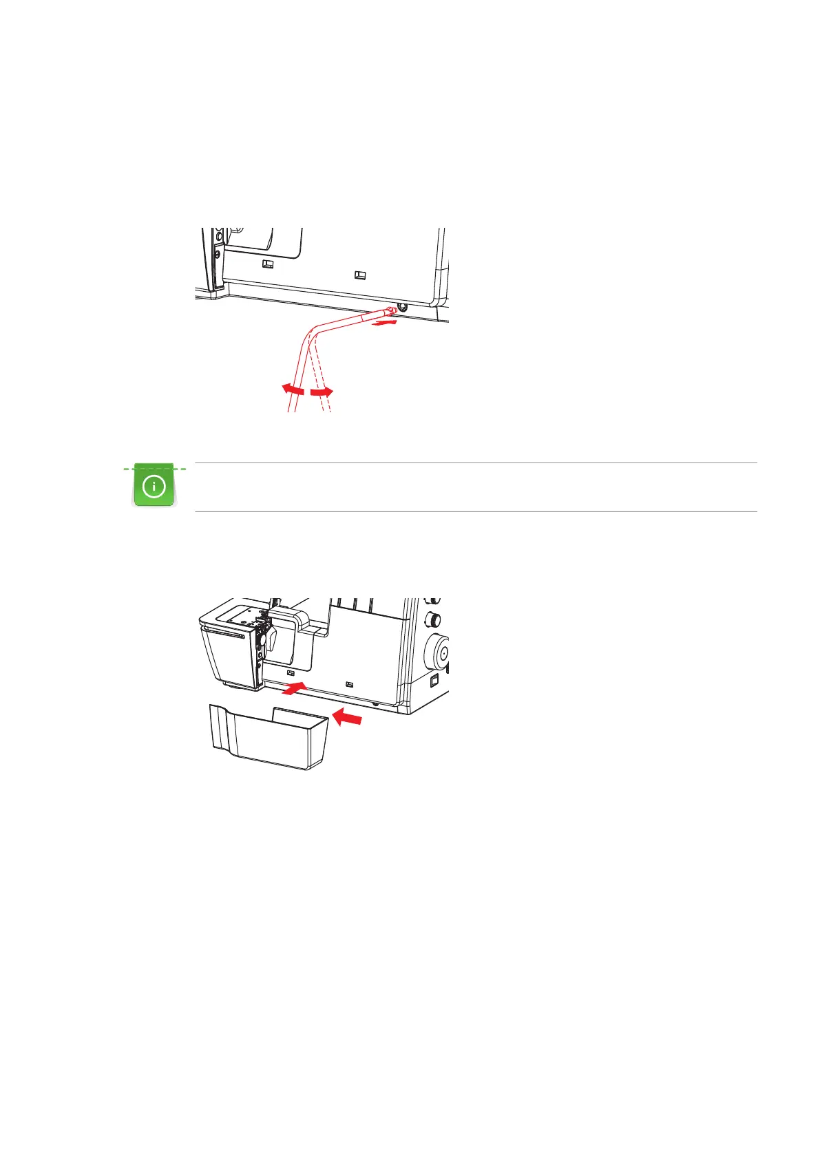 > To attach the cut-offs bin, hook the cut-offs bin into the snap-in opening on the looper cover.
