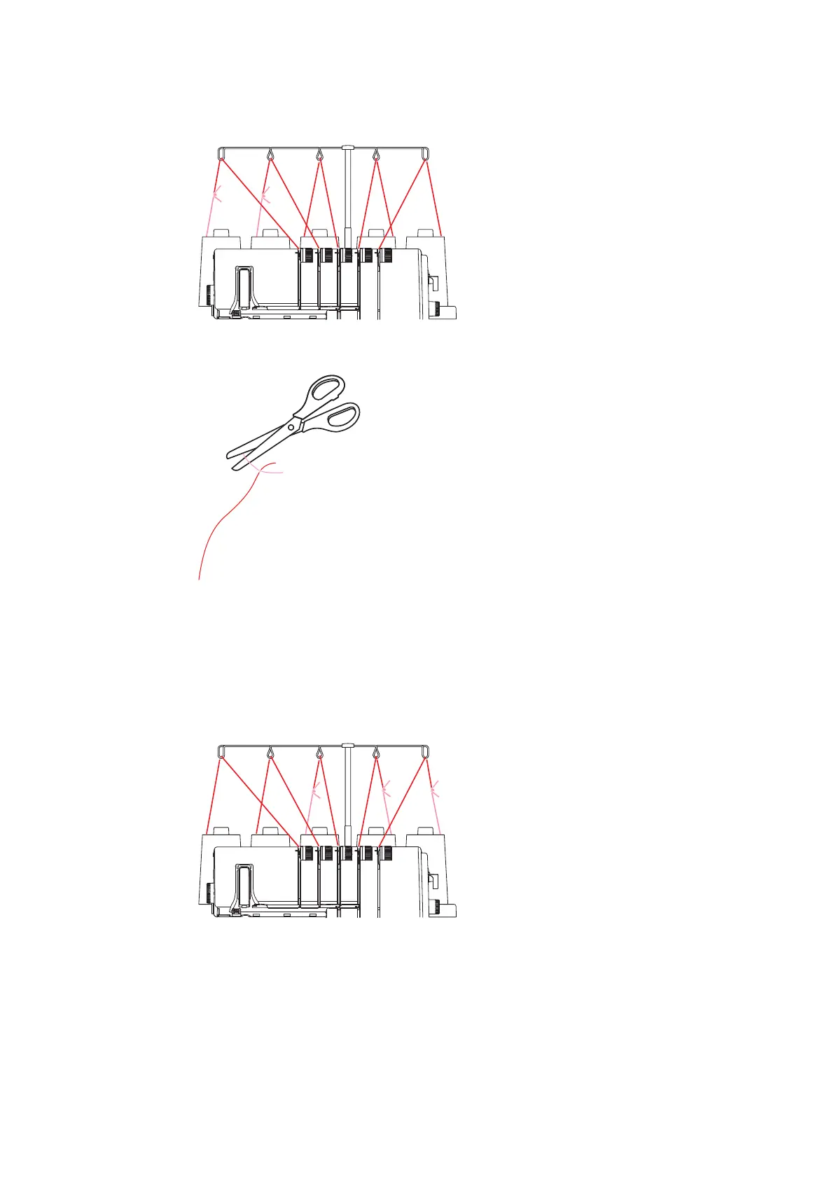 > Pull the threaded end of the thread until the newly knotted thread is in front of the needle eye.