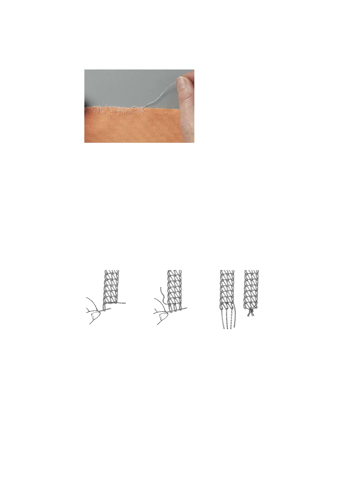 – The looper threads lie loosely around the fabric edge and can be pulled away easily.