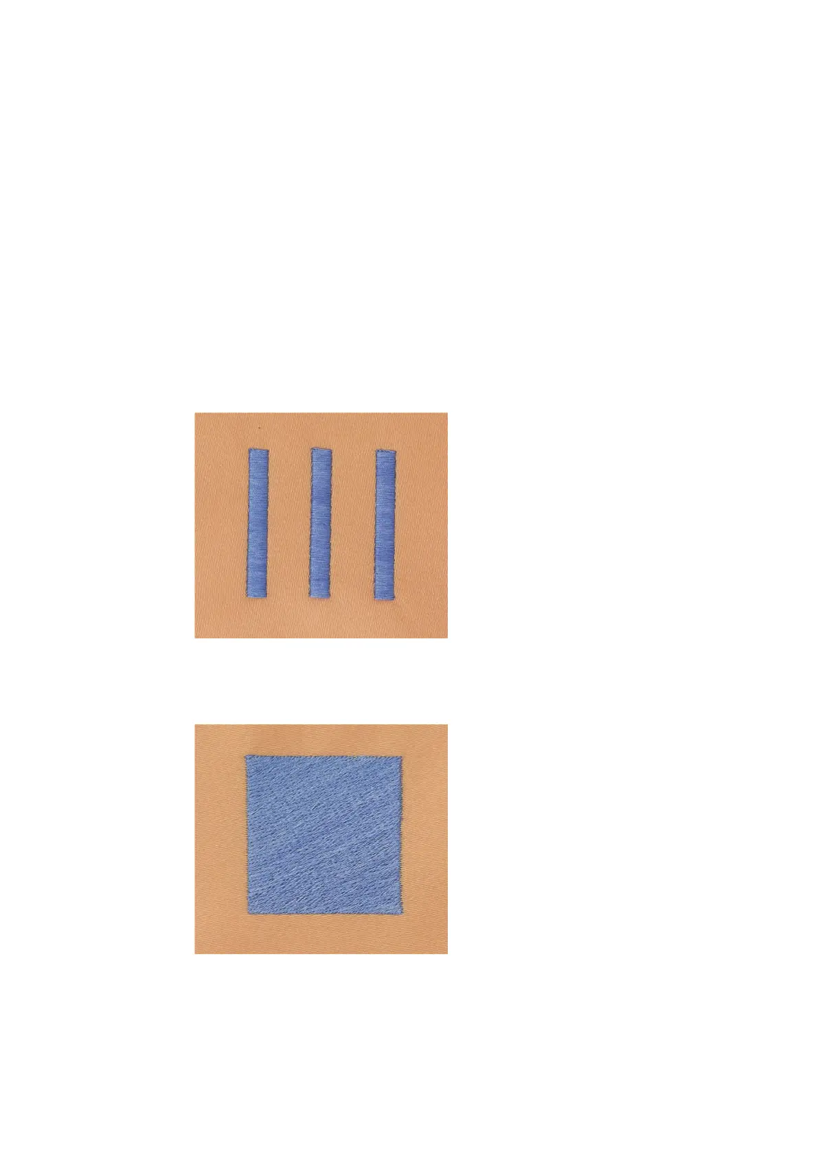 larger areas, since wide stitches are too loose and do not cover the fabric properly. In addition there is the