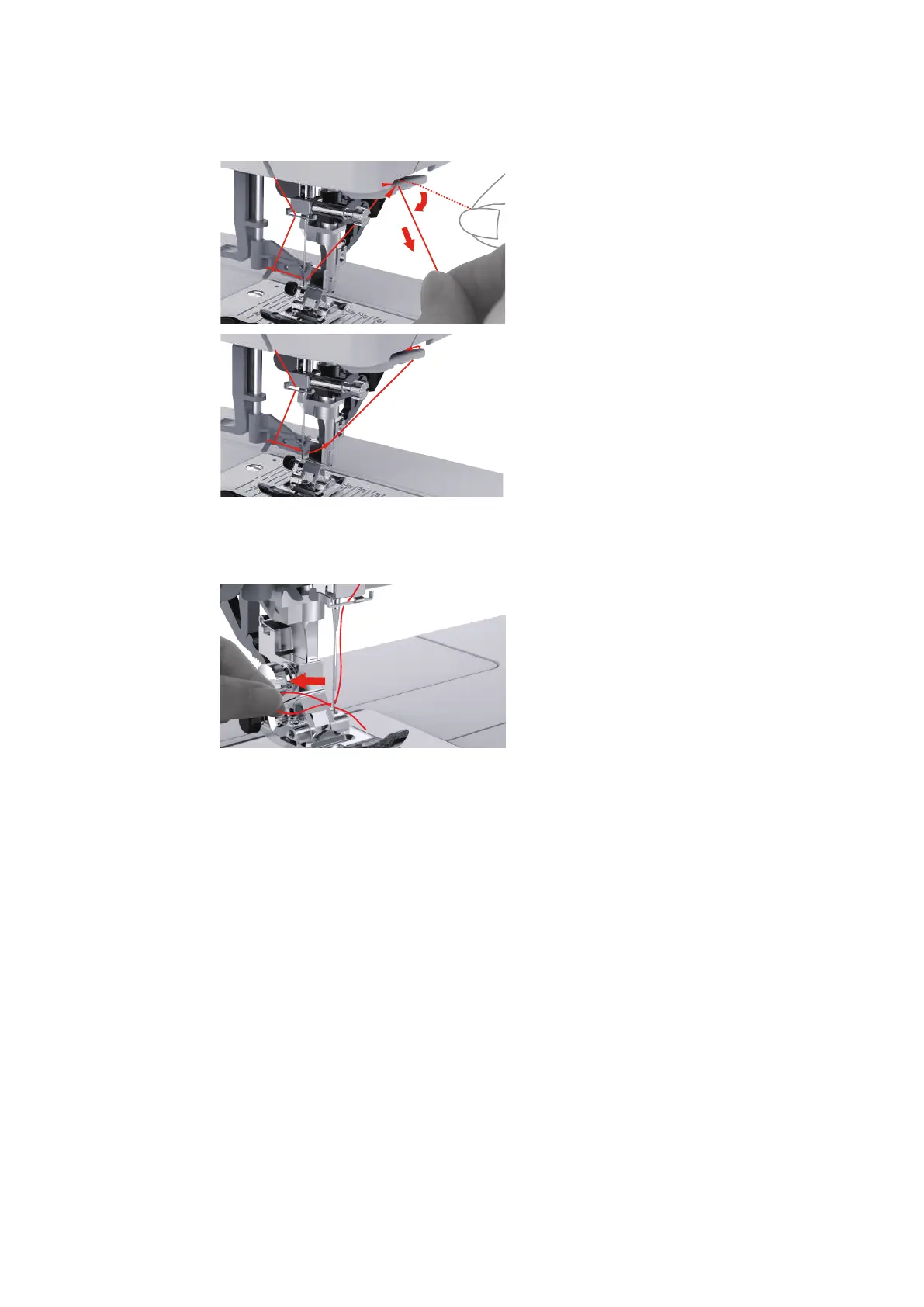 – The hook retreats and passes the thread through the needle eye where a loop is formed.