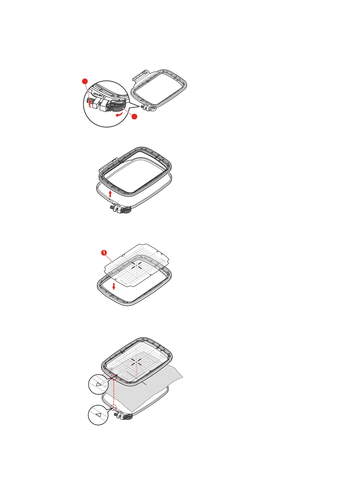 > Fit the hoops into each other; ensure that the material does not move.