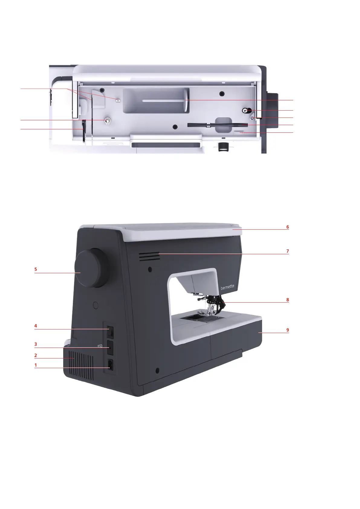 4 Power switch 9 Sewing table and accessory box