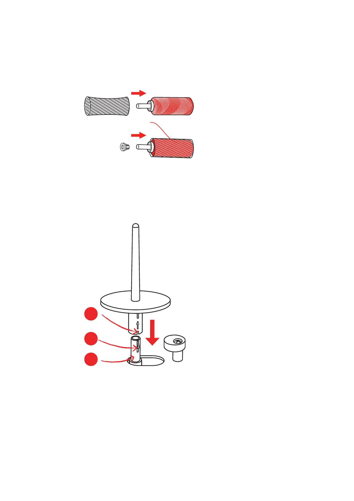 > Place the felt disc (1) on the second spool pin.