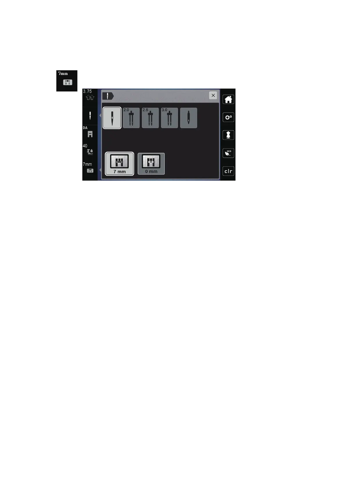 > Press the Icon «Needle selection» or «Stitch plate selection».
