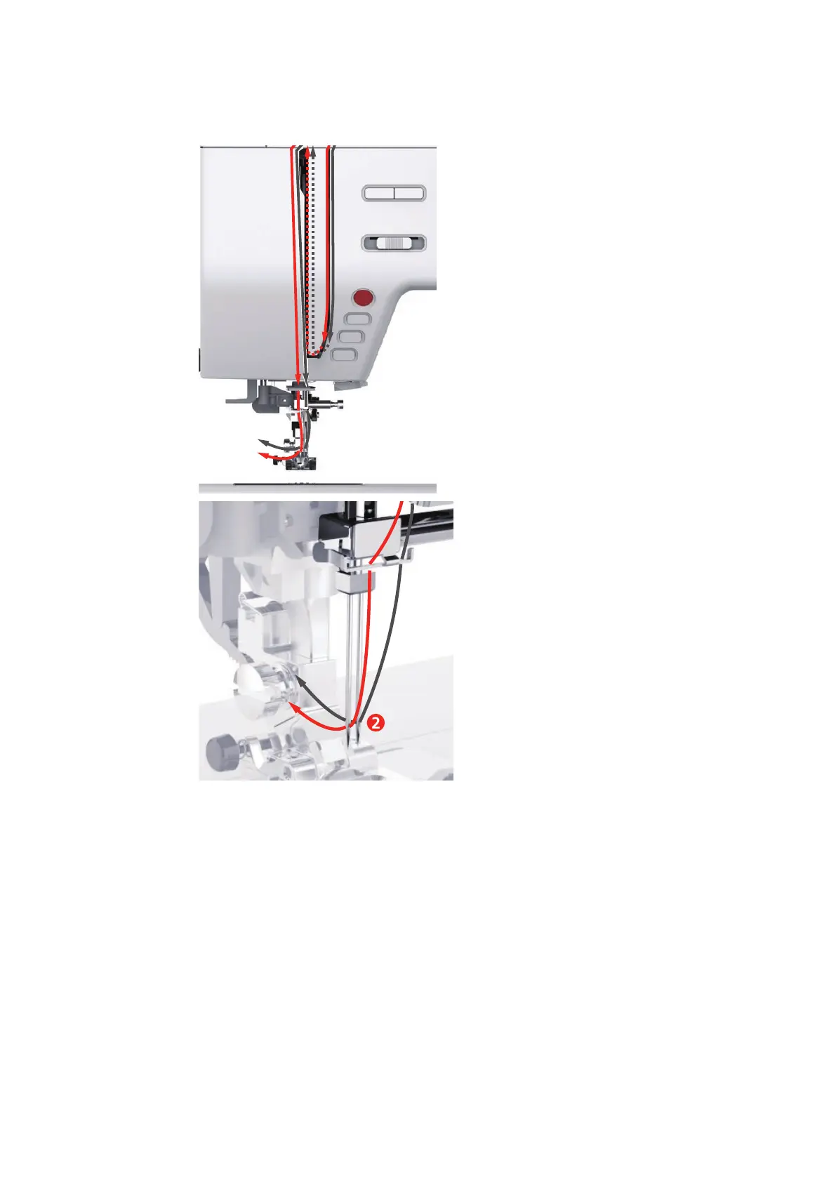 > Thread the second thread manually into the left needle.