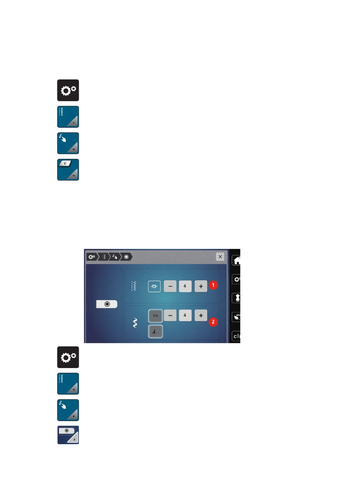> Touch the icon «Sewing settings».