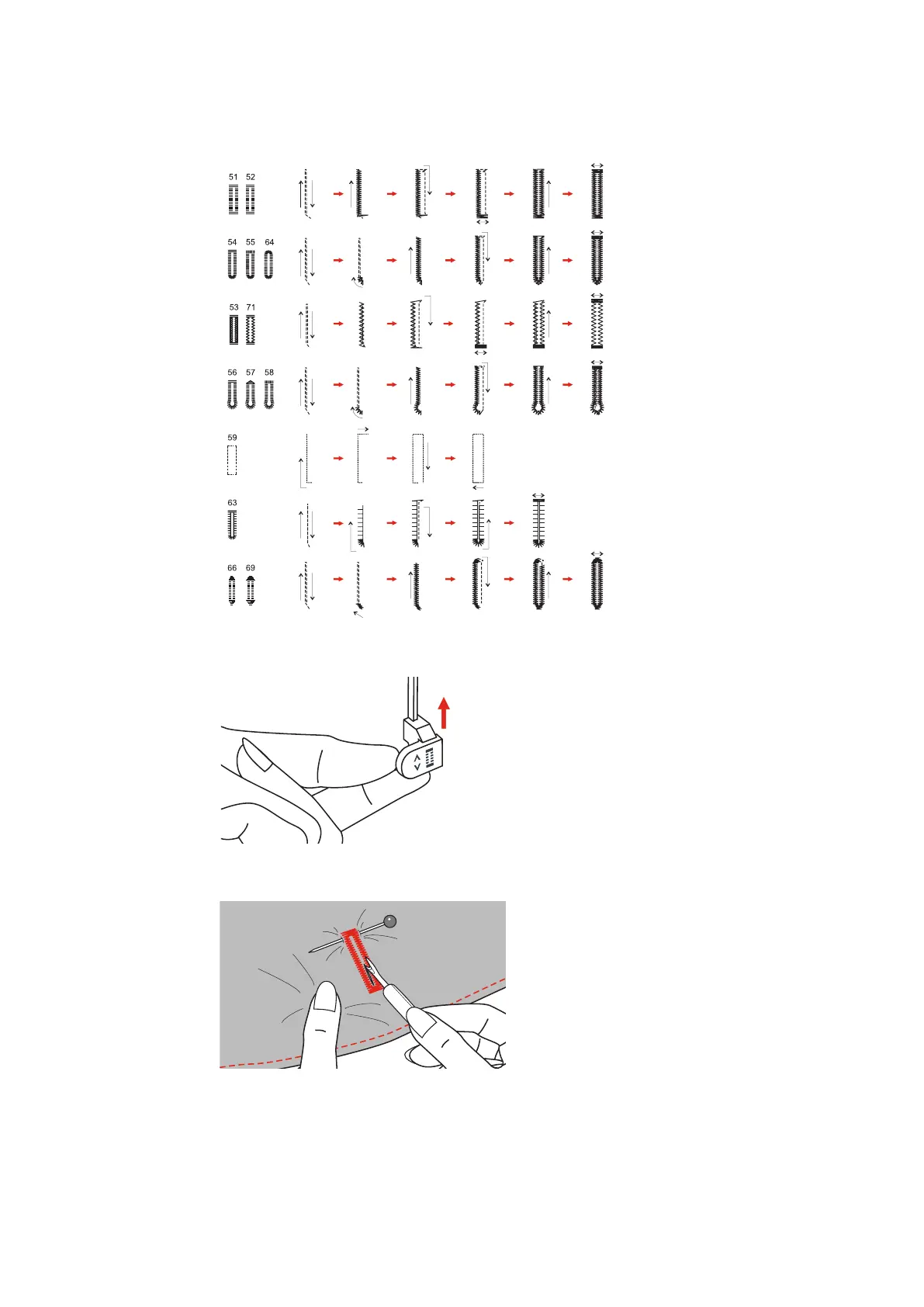 > Raise the sewing foot and cut the thread.