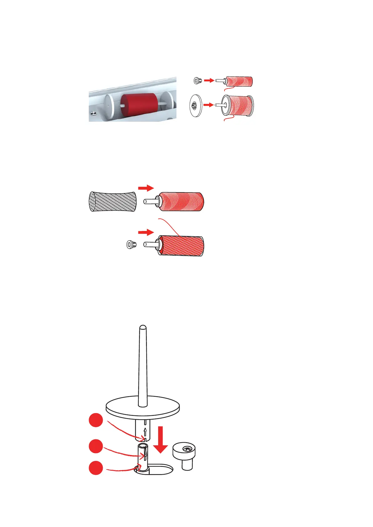 > Pull the spool net over the thread spool. Ensure when doing so that the spool net does not slip off the