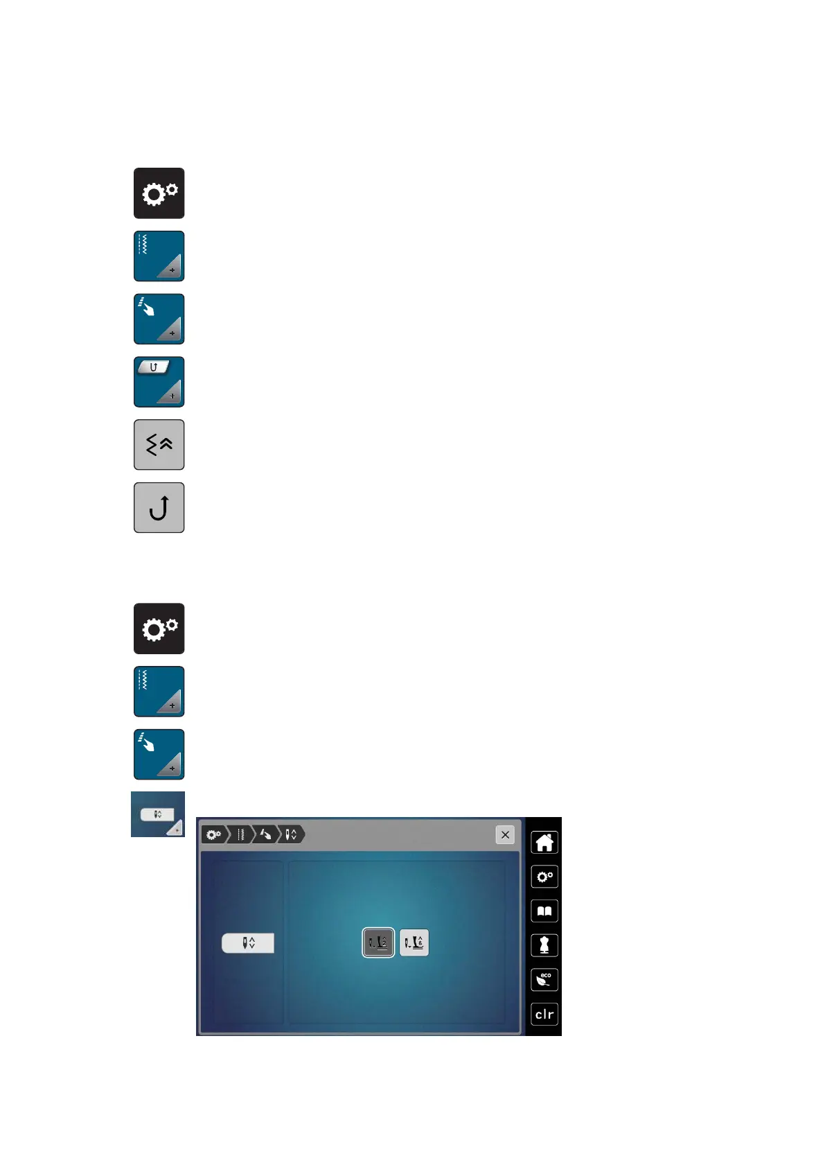 > To activate stitch-precise reverse sewing, tap «Back Stepping».