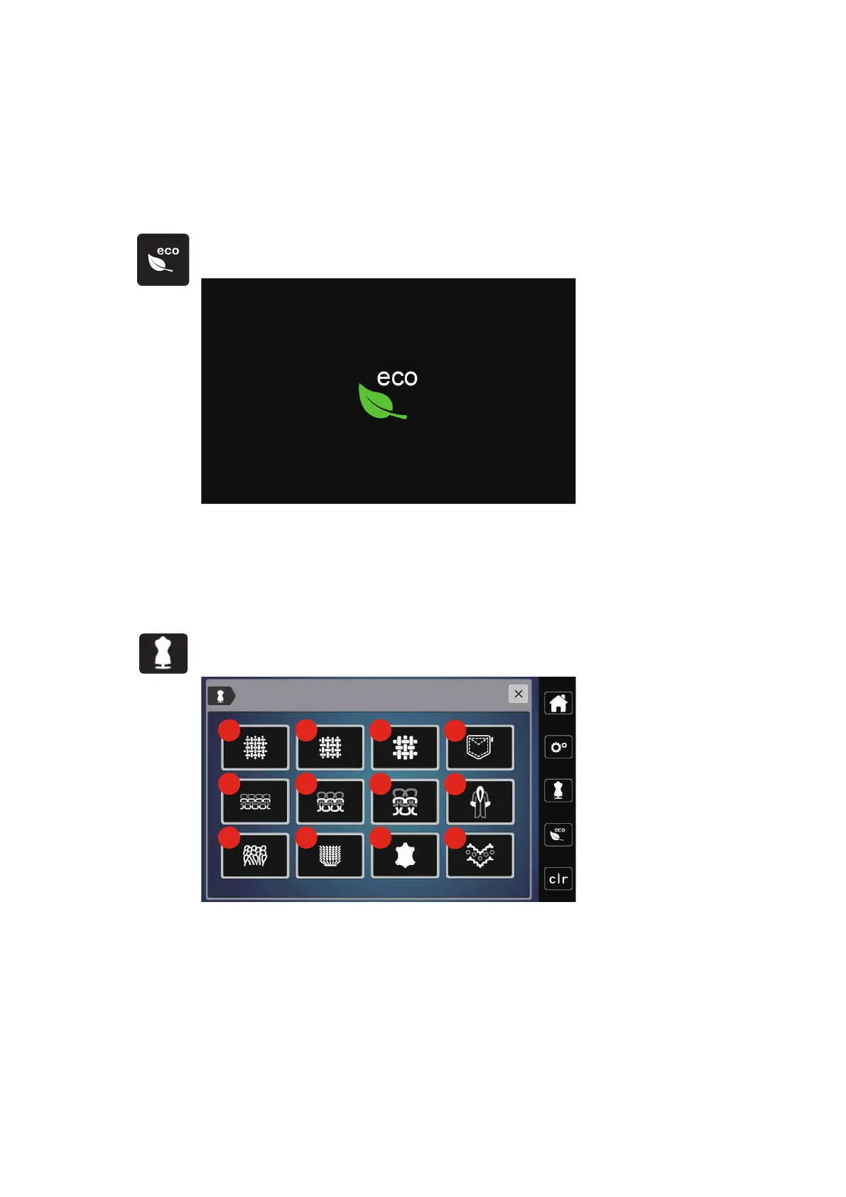 – The display goes to sleep. The power consumption is reduced and the sewing light is off.