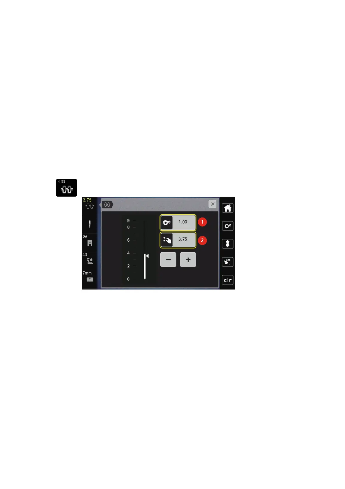 > Turn the «Upper Multi-function Knob» to the right to widen the stitch width.