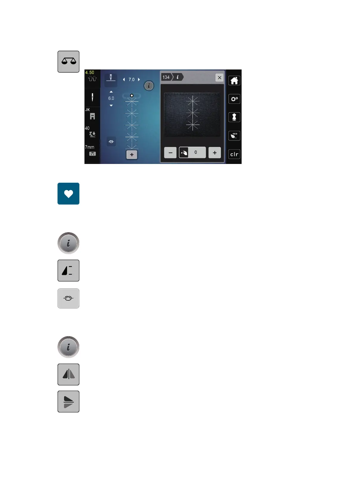 > To mirror the stitch pattern from left to right, tap «Mirror Image Left/Right».