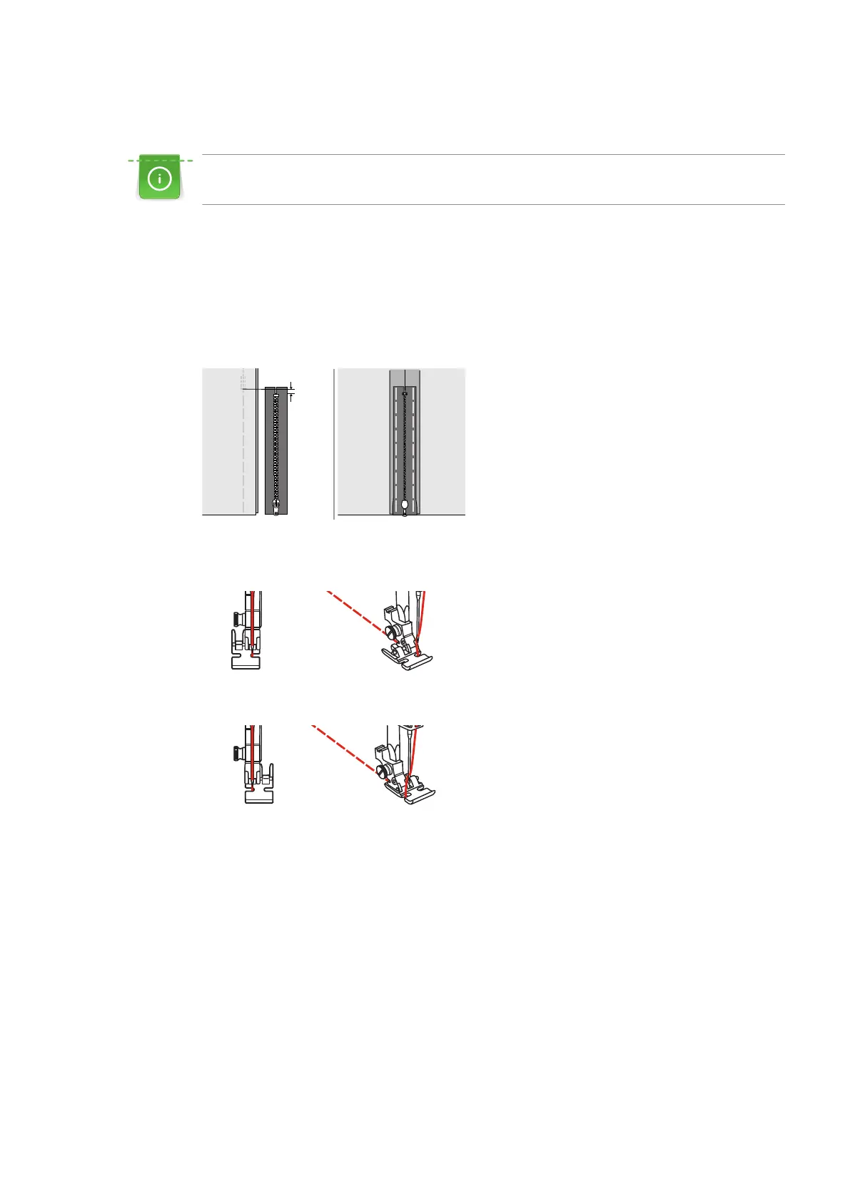 > When sewing the left-hand side of the zipper, secure the right-hand side of the presser foot pin using the