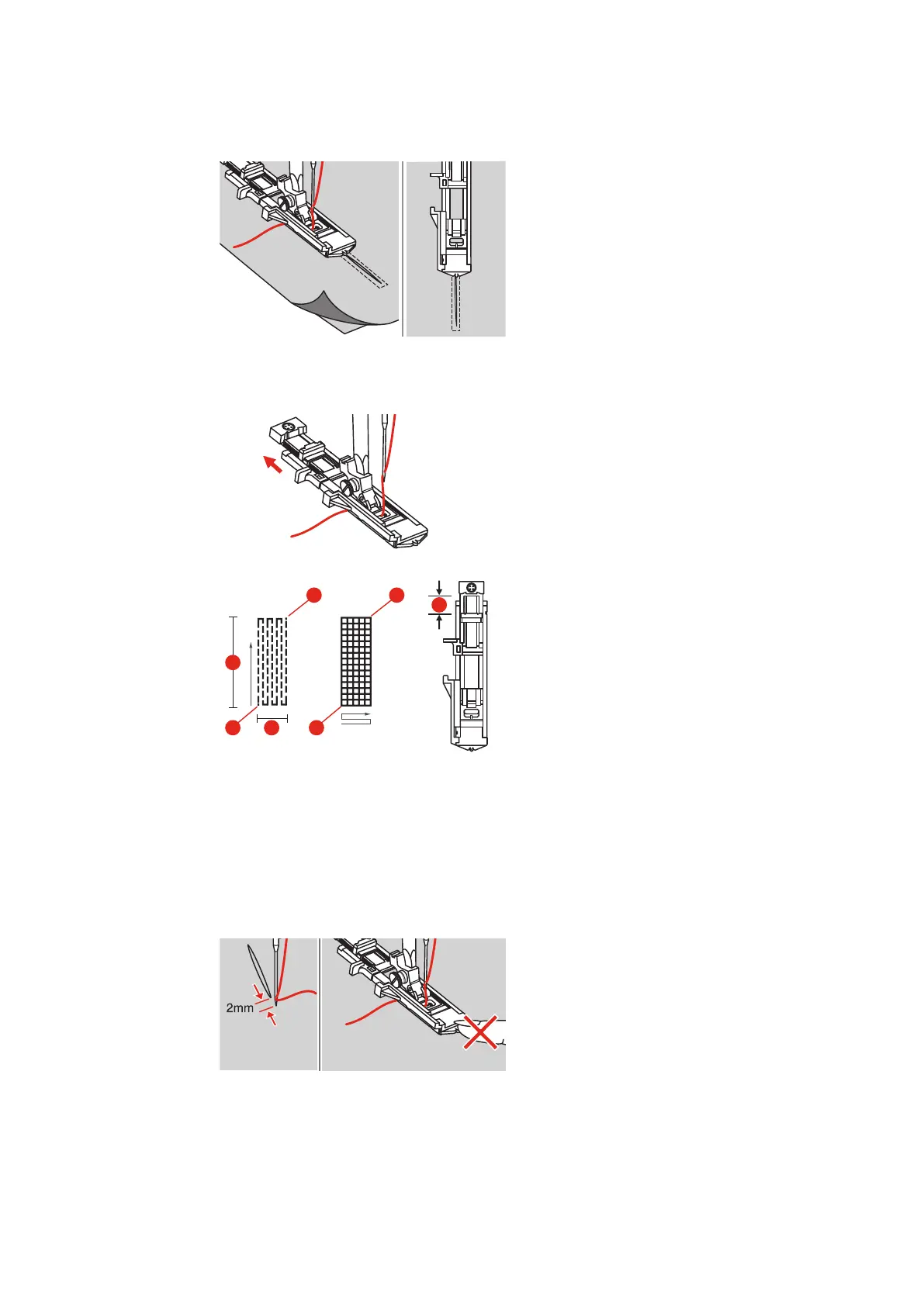 > Adjust the button holder on the buttonhole foot to the desired length. The size of one darning sequence