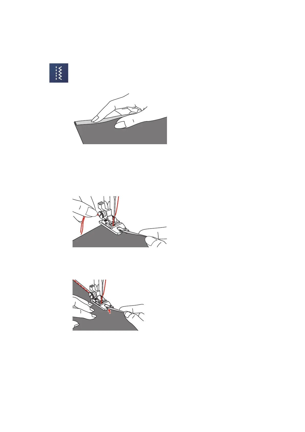 > Place the edge of the fabric with the left-hand side of the fabric facing up under the presser foot. The