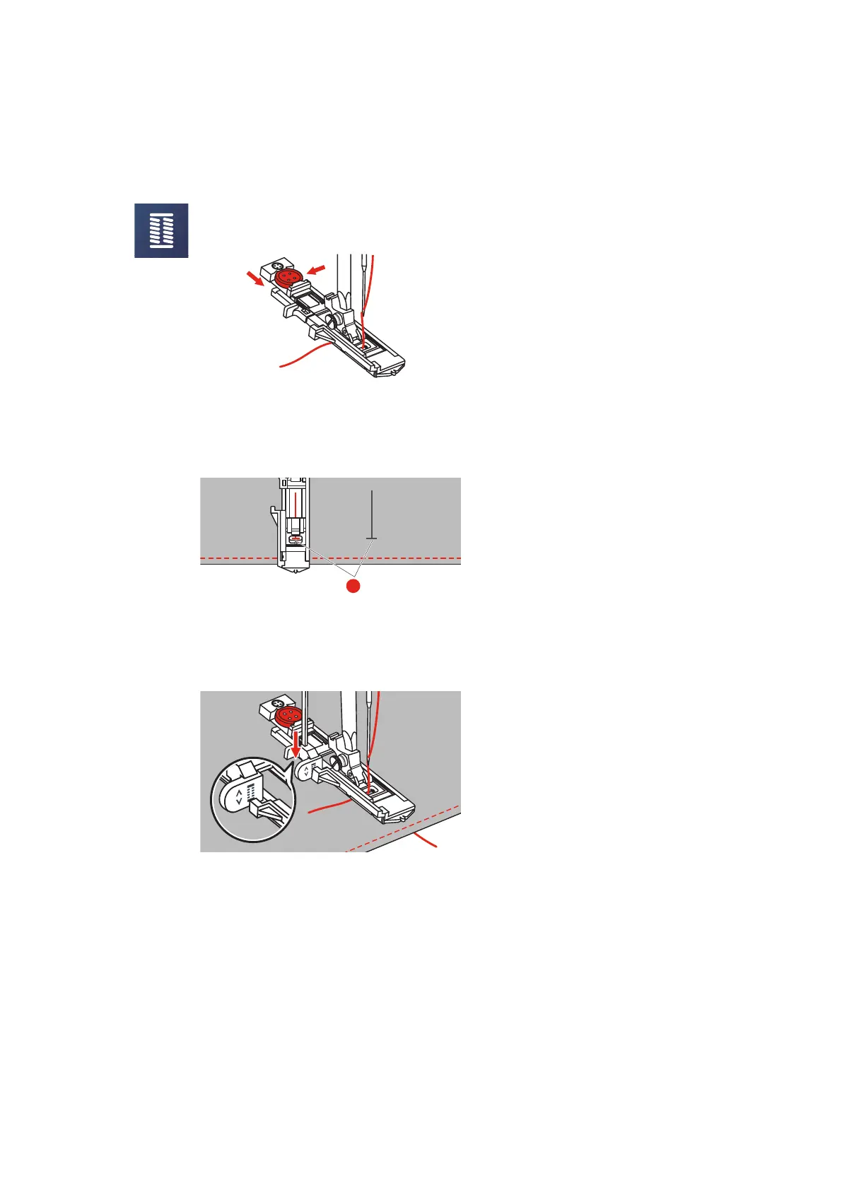 > Position the fabric under the presser foot so that marking of the centerline is aligned with the starting