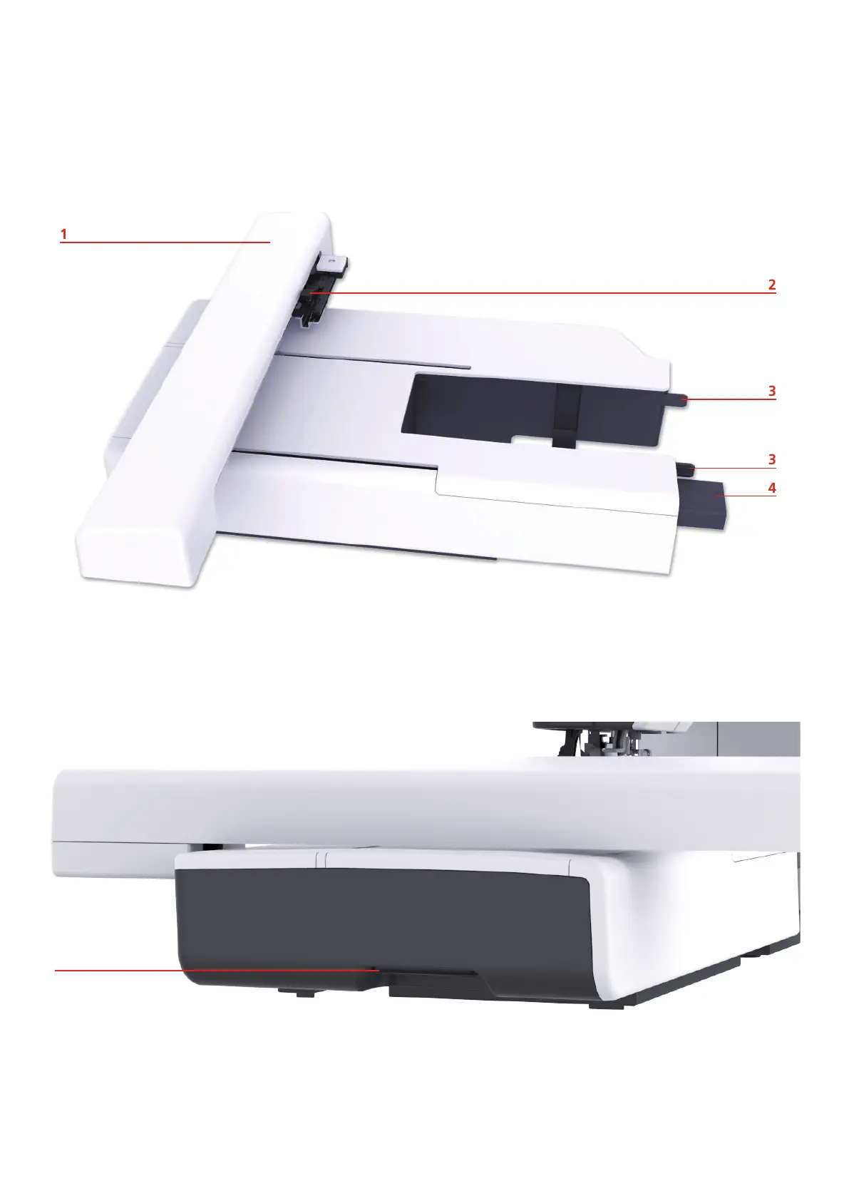 2 Bracket for attaching the embroidery hoop 5 Embroidery unit release button