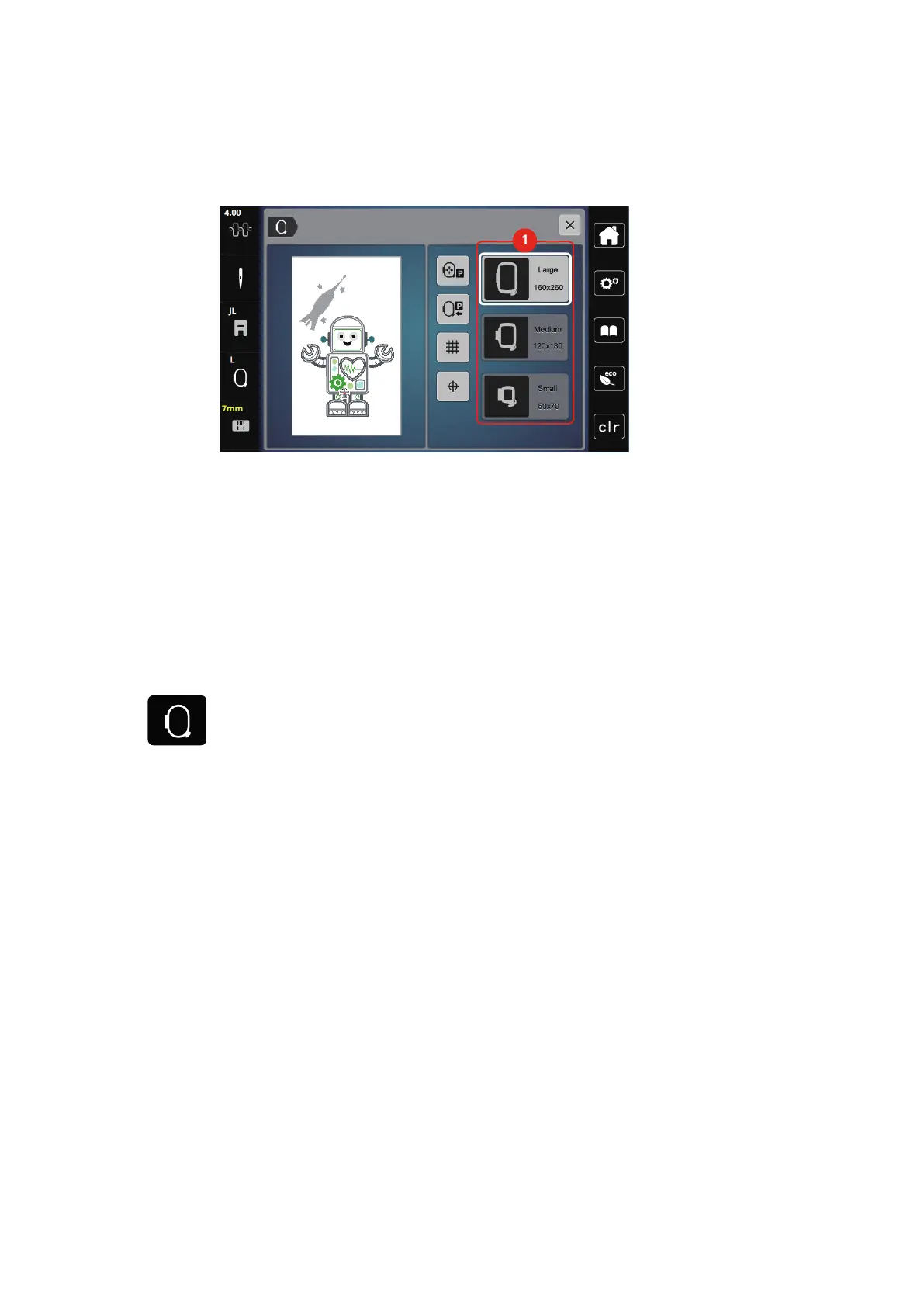 > Touch the icon «Embroidery hoop display/Embroidery hoop selection».