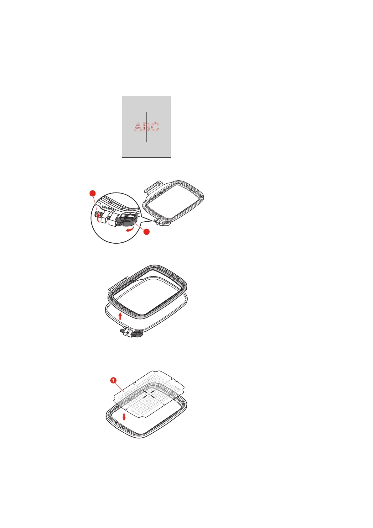 > Place the template (1) in the inner hoop, so the bernette logo is at the front edge, and make sure the cut