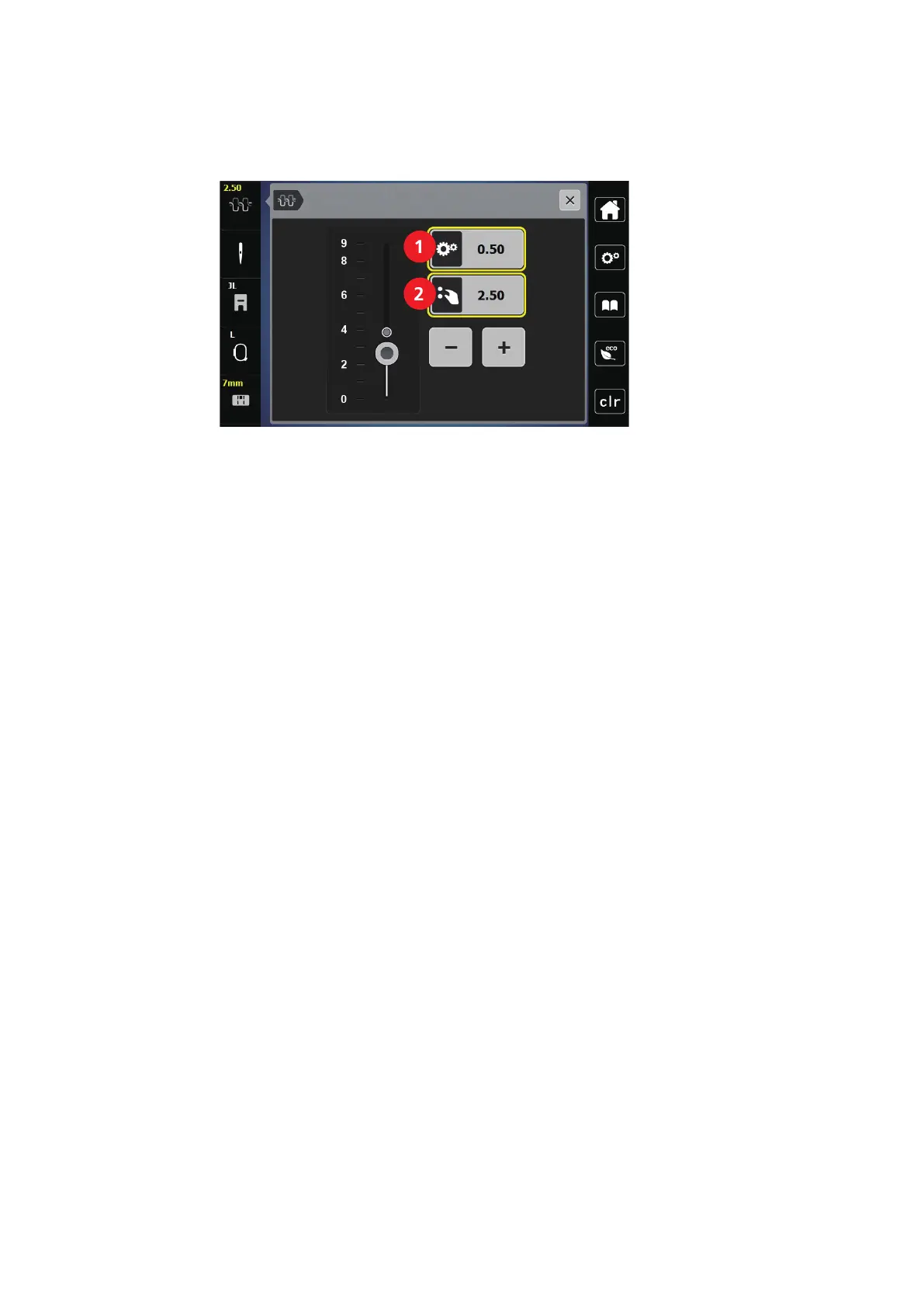 > Move the slider in the display using the touchscreen pen/finger to increase or reduce the upper thread