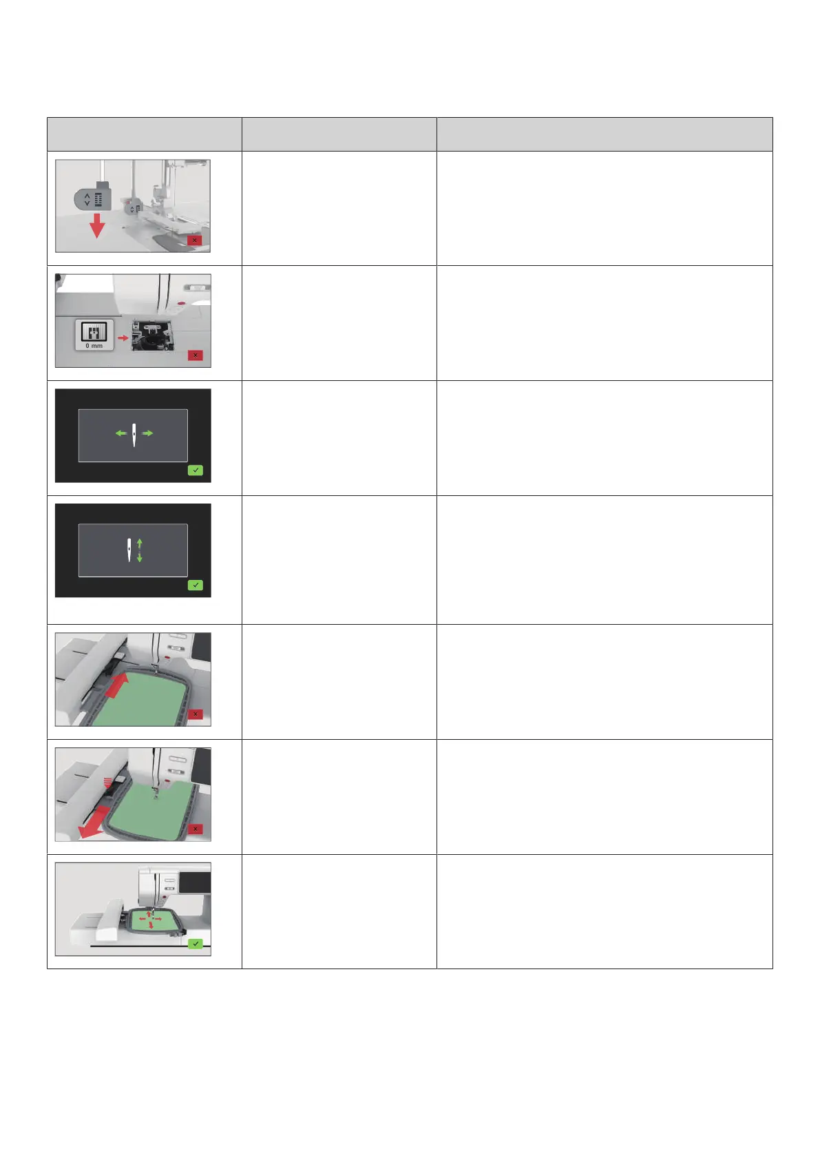 Needle moves sideways. When the stitch plate is being changed, this picture appears