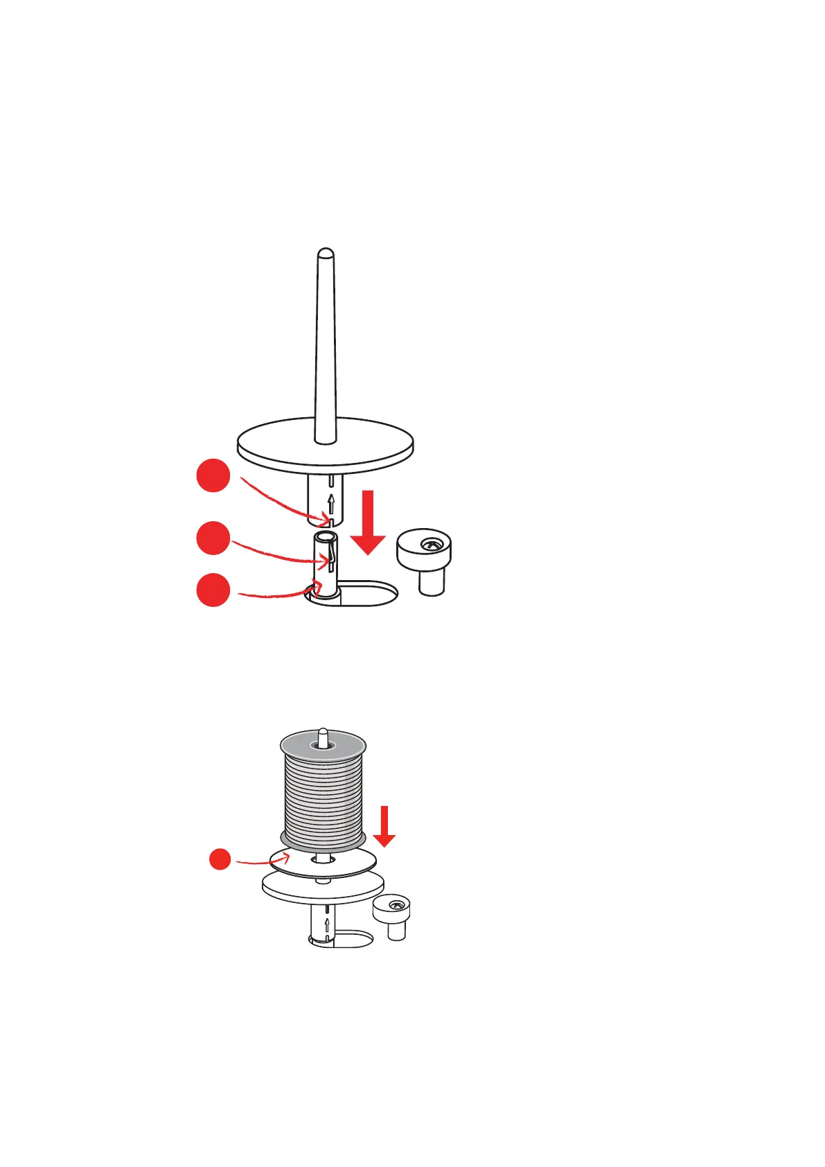 The felt disc prevents the thread from getting hooked at the second spool pin.