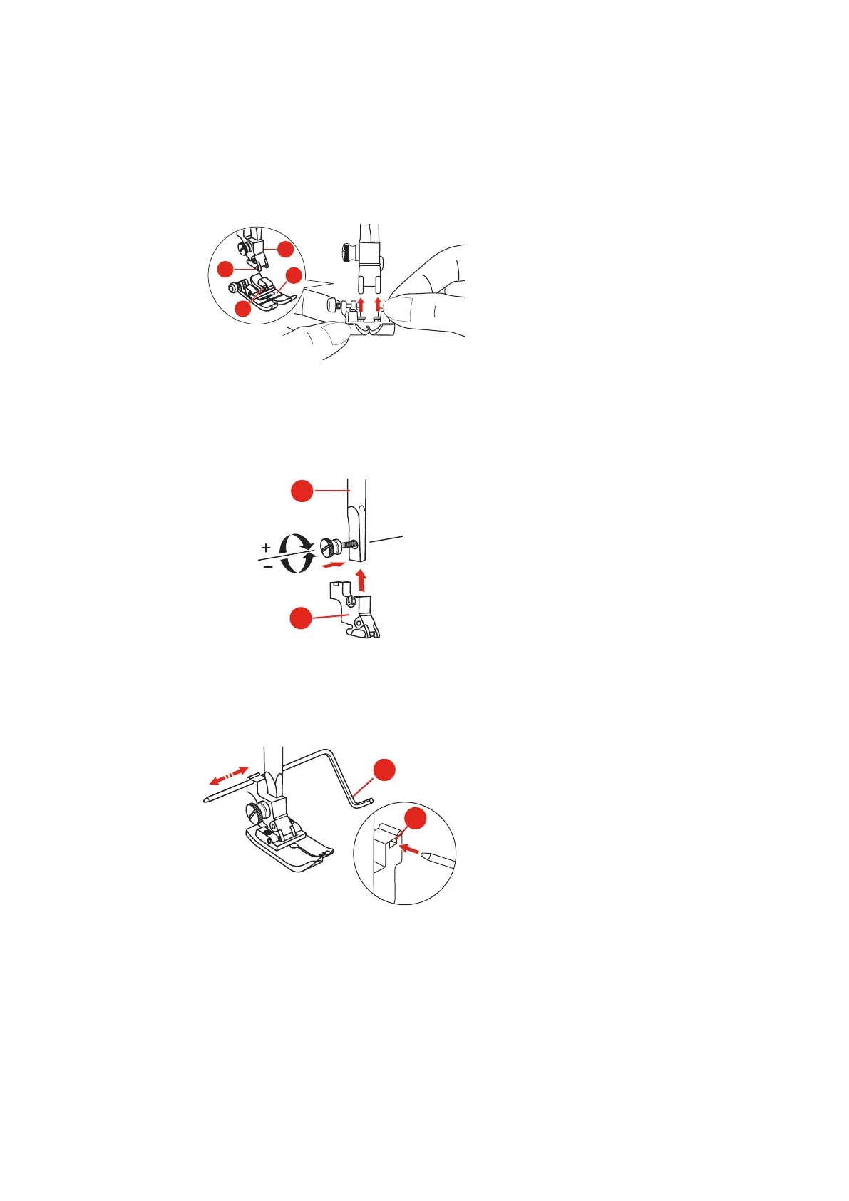 > Place the presser foot sole (2) under the shaft groove (3) so that the shaft groove is above the presser