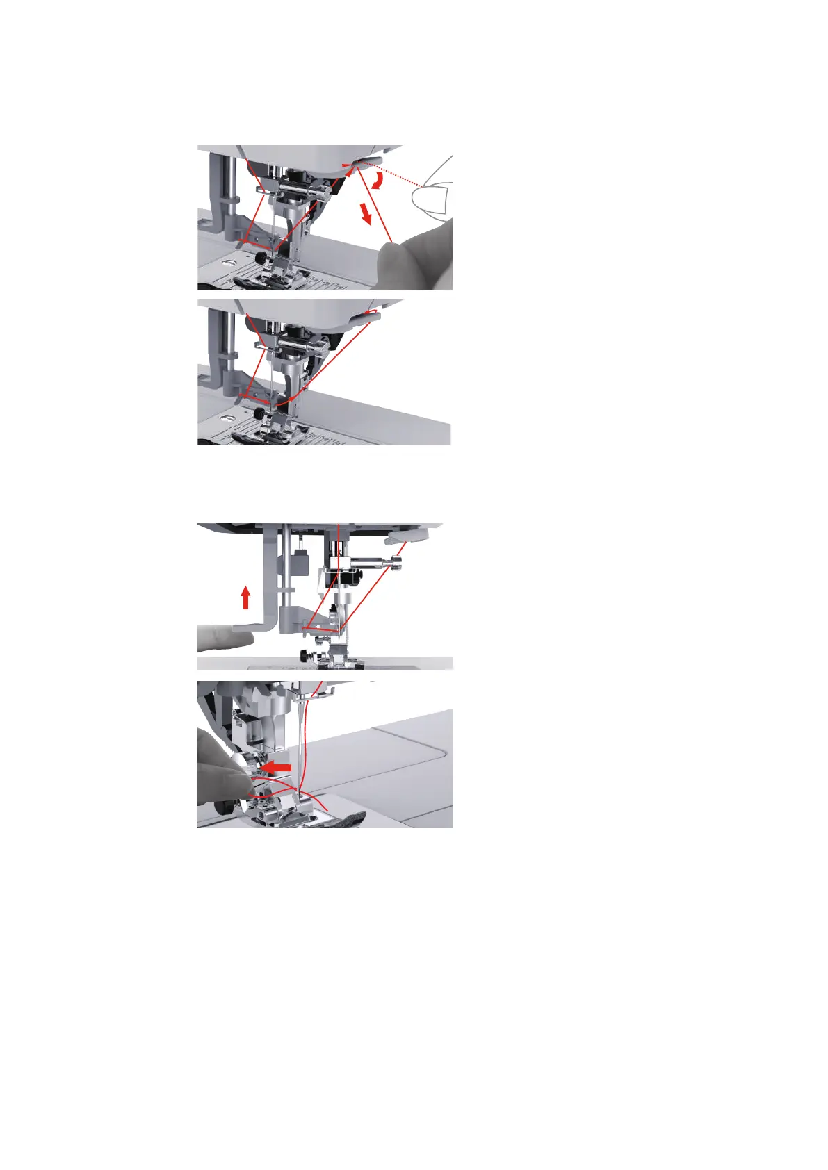 – The hook retreats and passes the thread through the needle eye where a loop is formed.