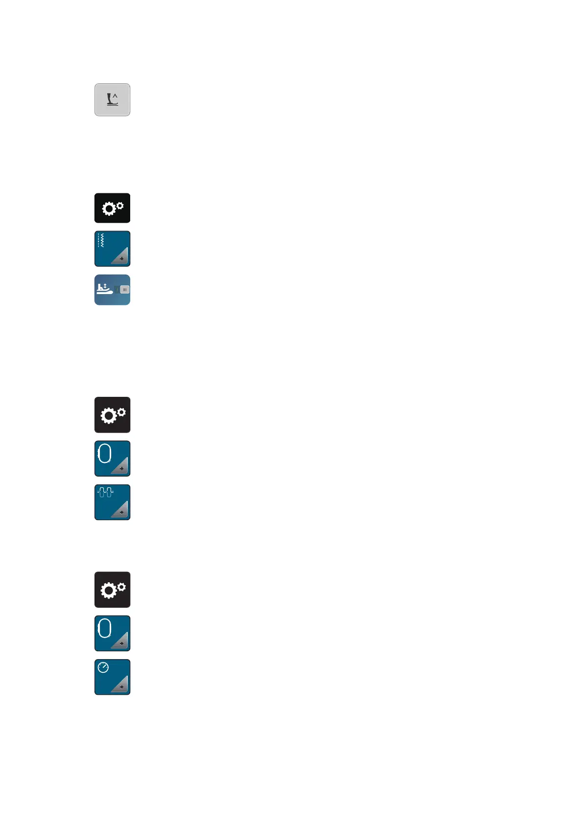 > Touch the icon «Position the presser foot» again so that the presser foot remains up via the back kick.