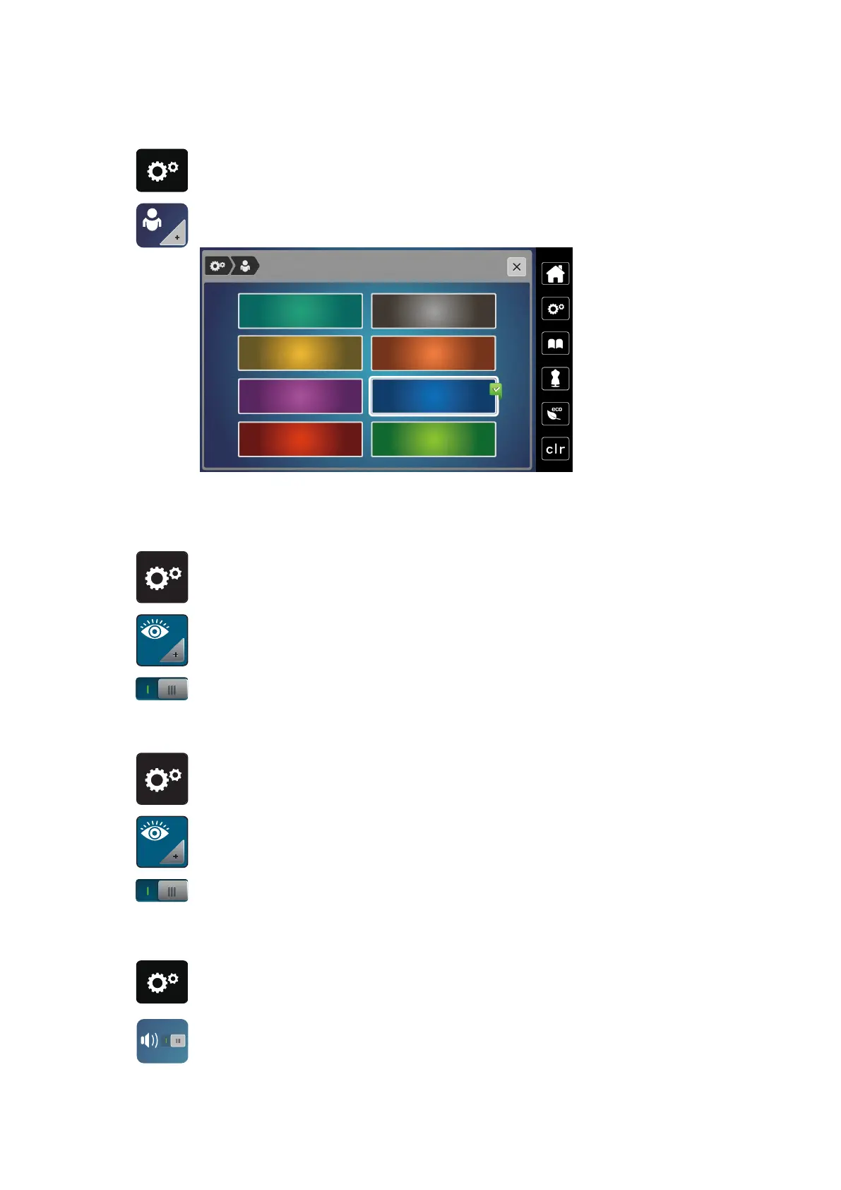 > Touch the icon «Sound on/off» to deactivate any audio signals in general.