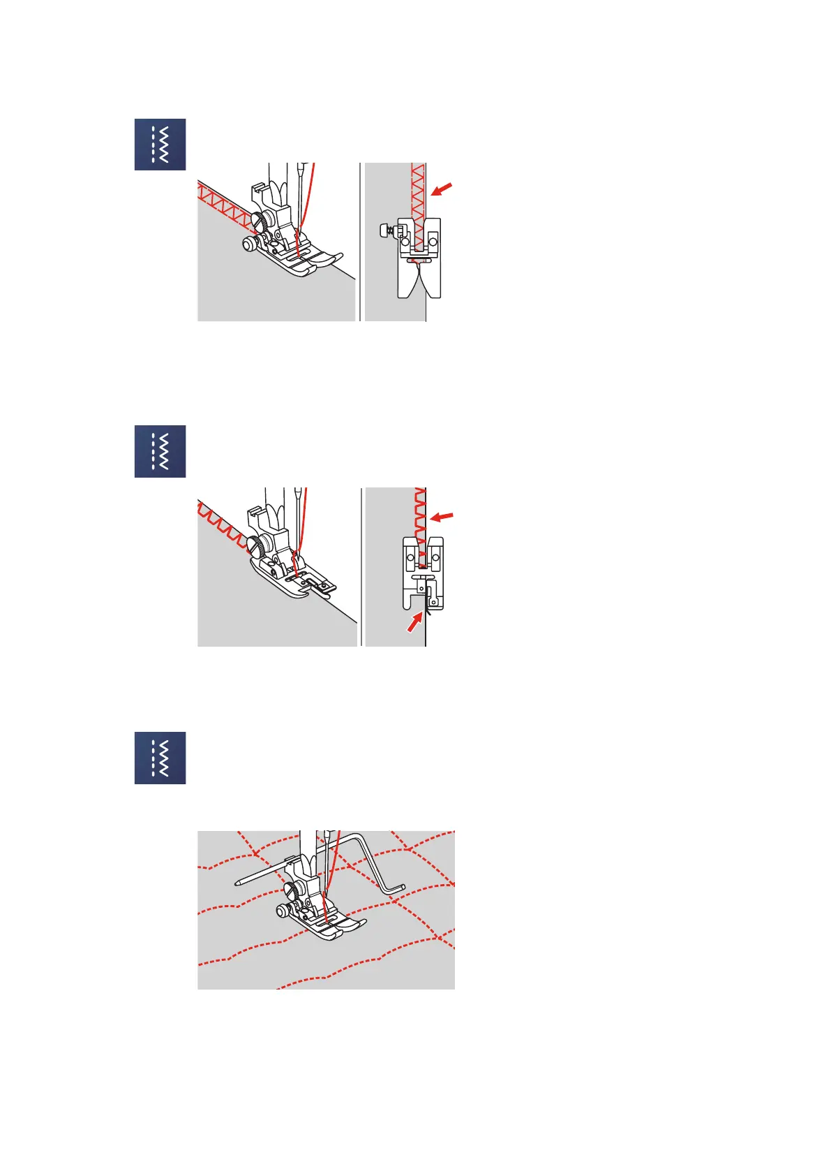 When sewing parallel wider lines, it is recommended to guide the seam guide along the sewn of lines.