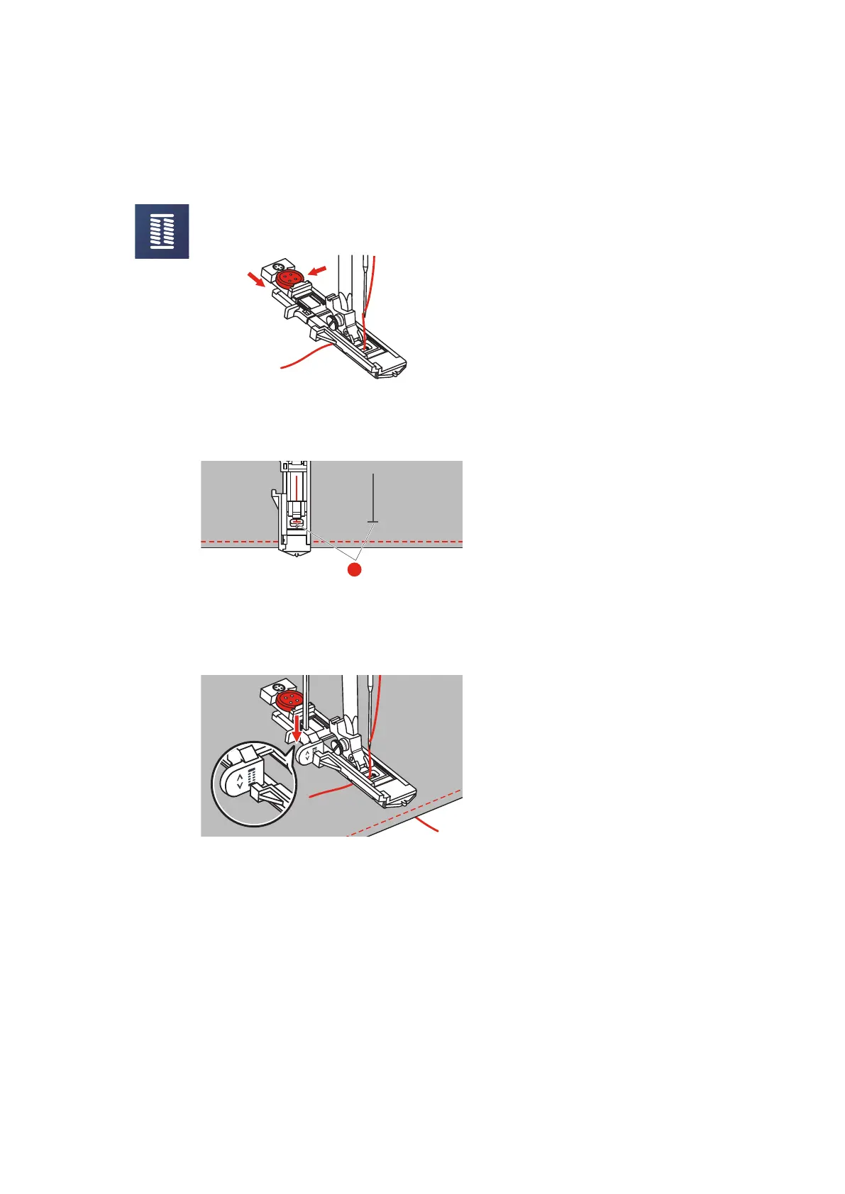 > Position the fabric under the presser foot so that the centerline‘s mark is aligned with the center of the