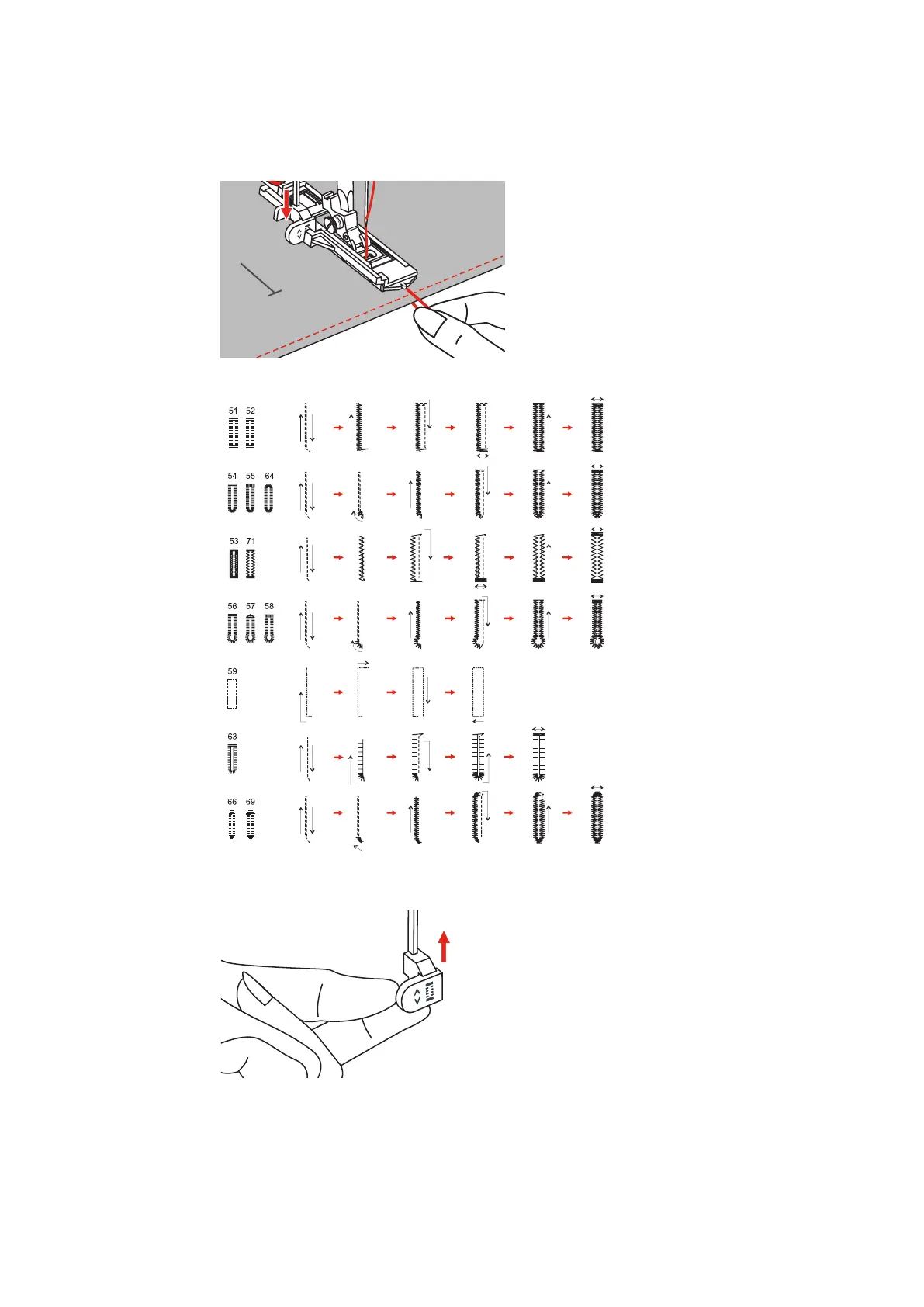 – After the buttonhole has been sewn, the machine sews a securing stitch automatically and then stops.