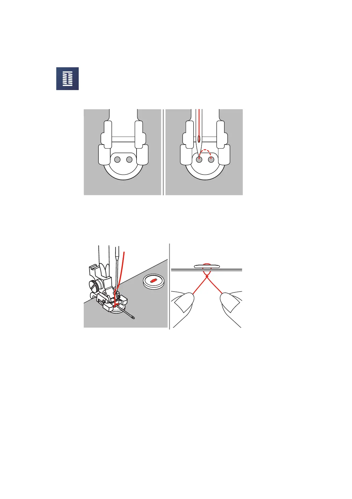 With the Button sew-on Program the first securing stitch is always stitched into the left hole of the button.