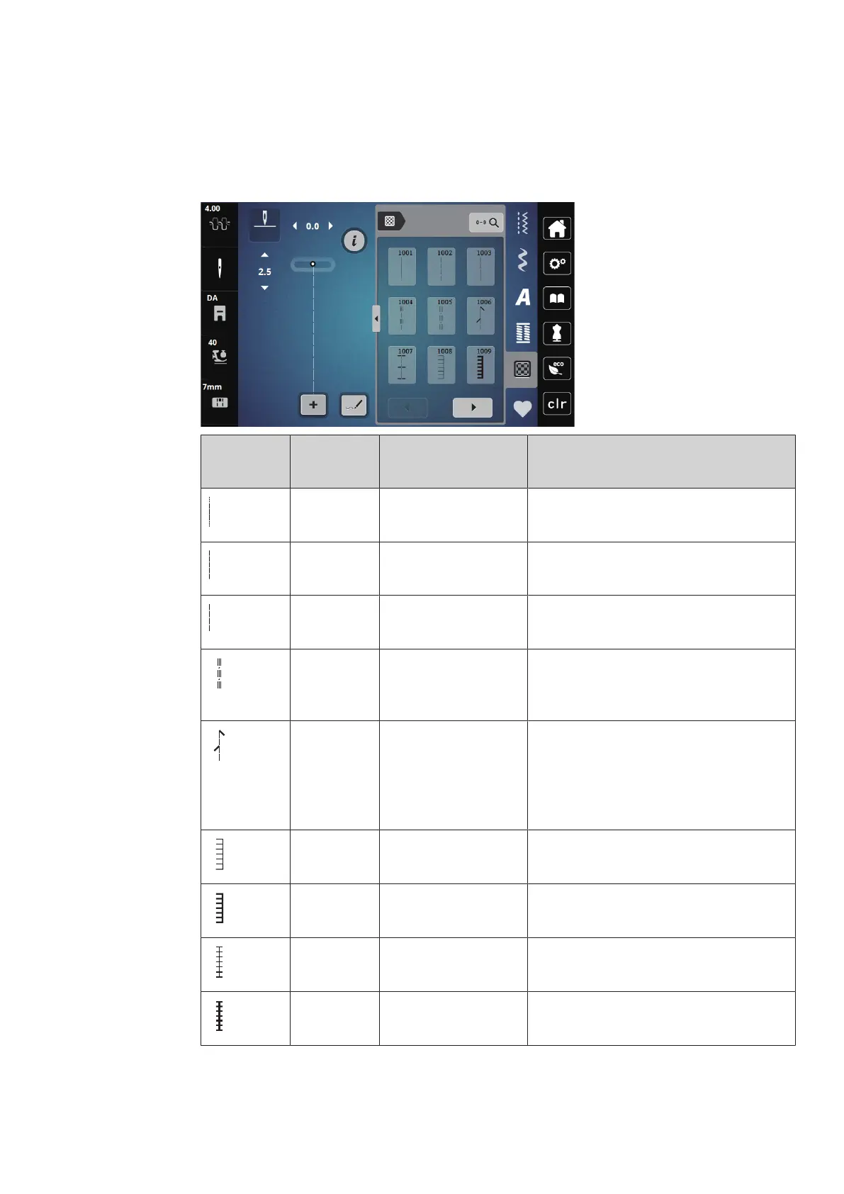1002 Quilting straight stitch Straight stitch 2 mm stitch length, to join