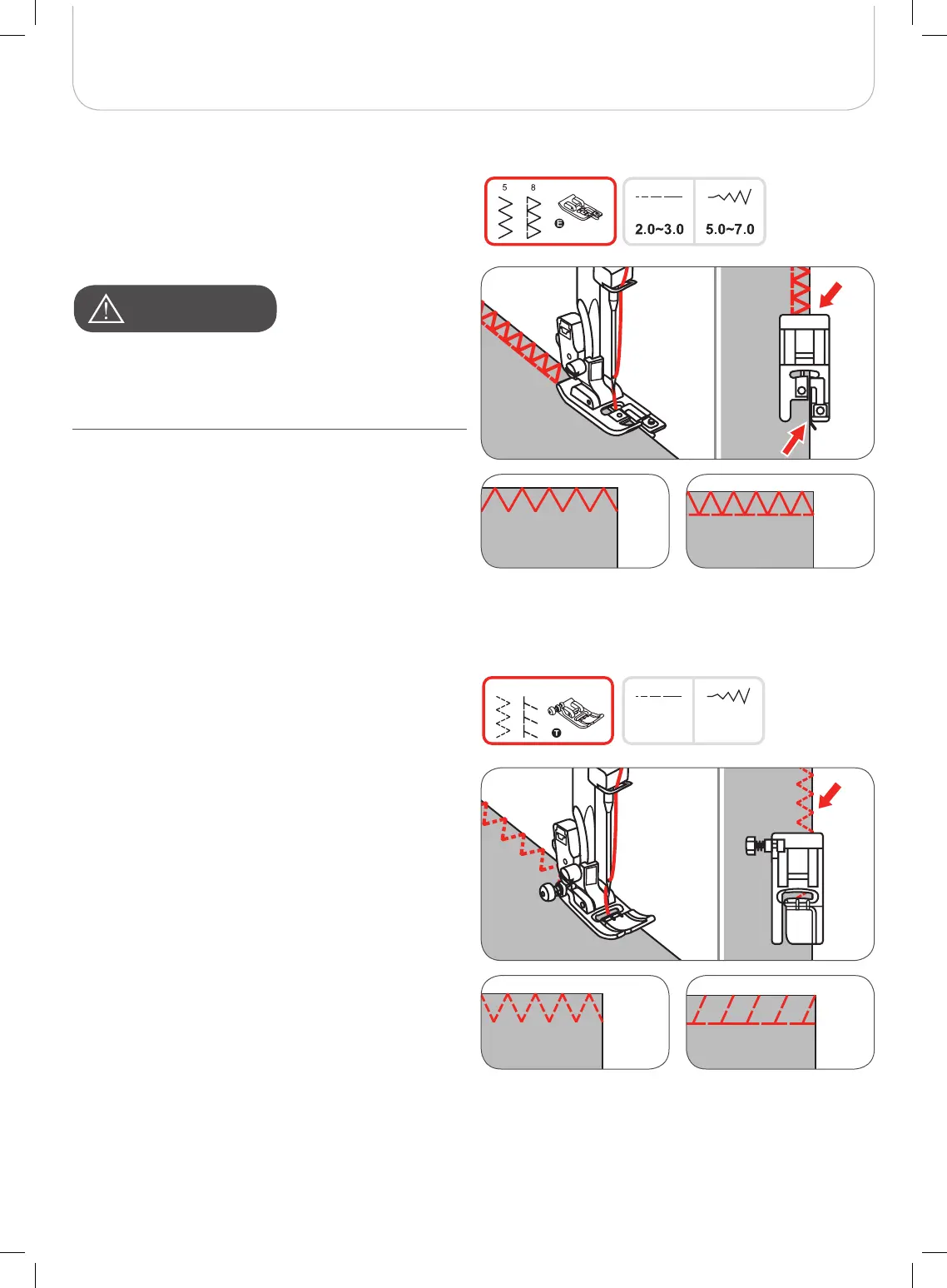 Patterns 5 and 8 only. Do not set the stitch width narrower