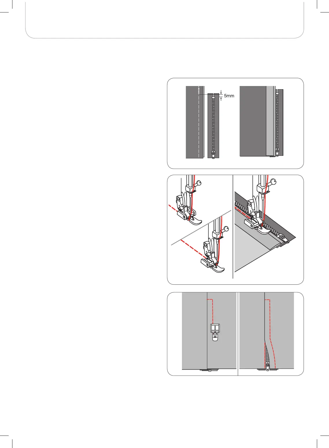 • Stop about 5cm (2 inches) from the top of zipper.